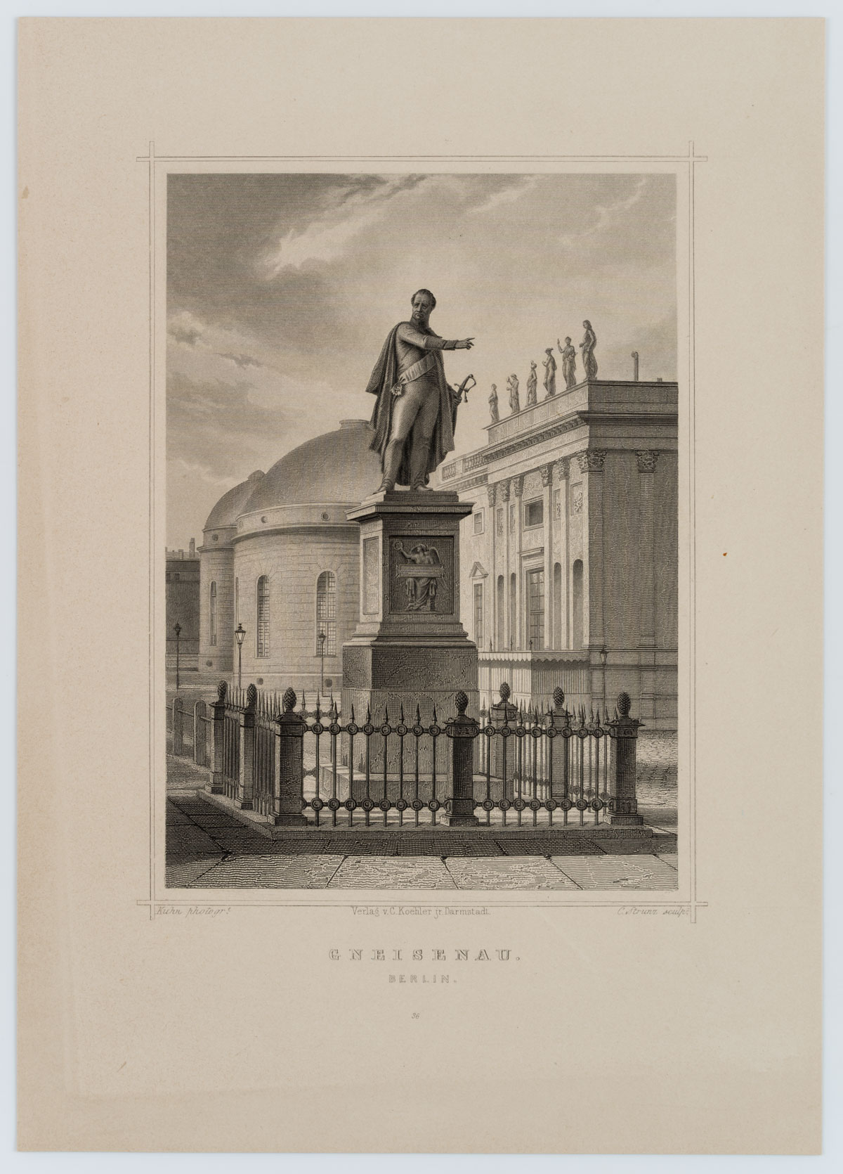 • Description: After a photograph by “Kuhn”. From a series of monuments to famous commanders created by the sculptor Christian Daniel Rauch and erected on Unter den Linden in Berlin. Showing the monument to the Prussian Field Marshal August Neidhardt von Gneisenau.