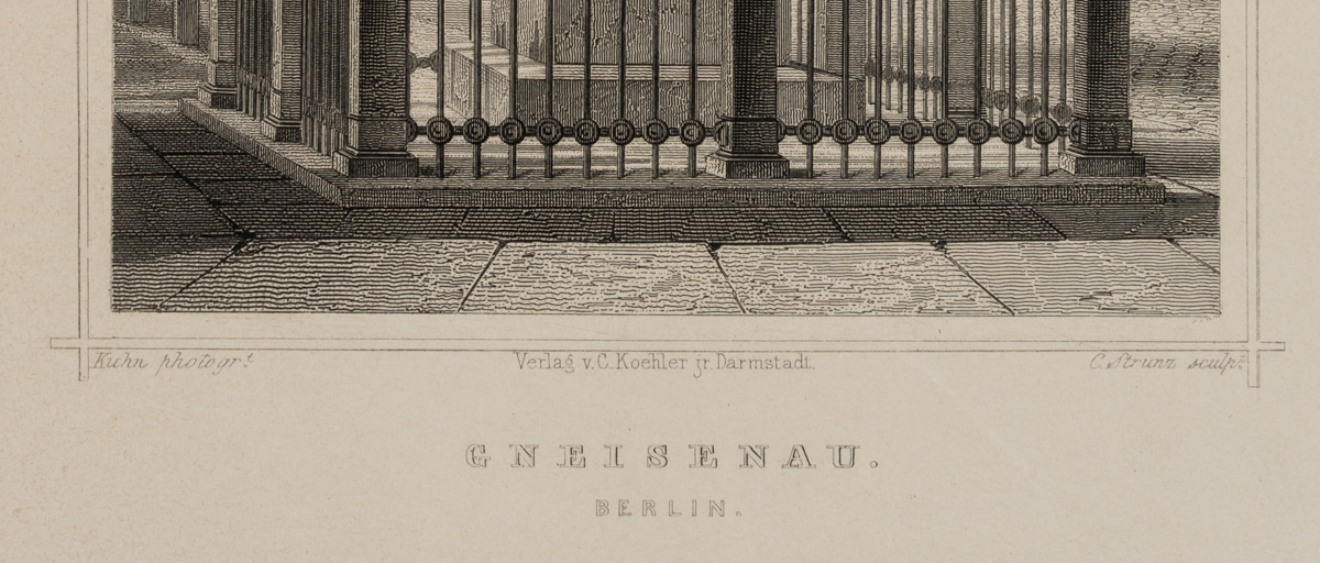 C. Strunz (19. Jahrhundert) nach J. Kuhn (19. Jahrhundert), Gneisenaudenkmal in Berlin, um 1880, Stahlstich
