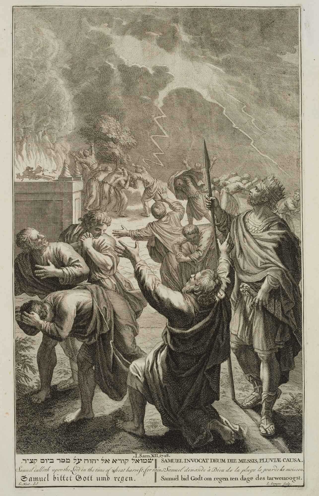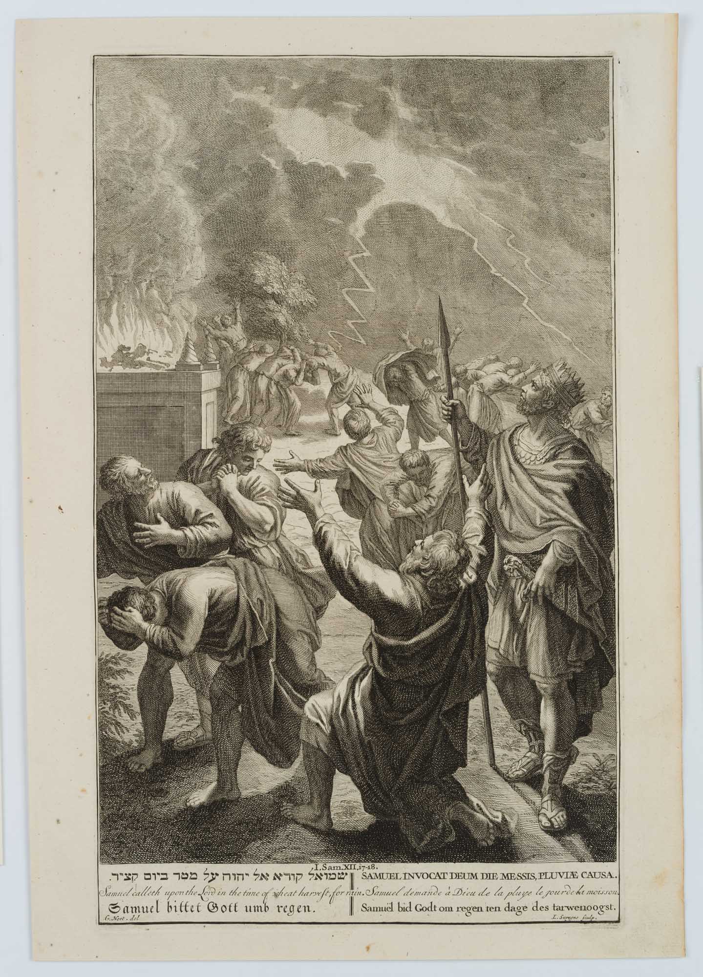 Louis Surugue (1686 Paris – 1762 Grand Vaux) after Gerard Hoet (1648 Zaltbommel – 1733 The Hague), Samuel asks God for rain, c. 1700, Copper engraving