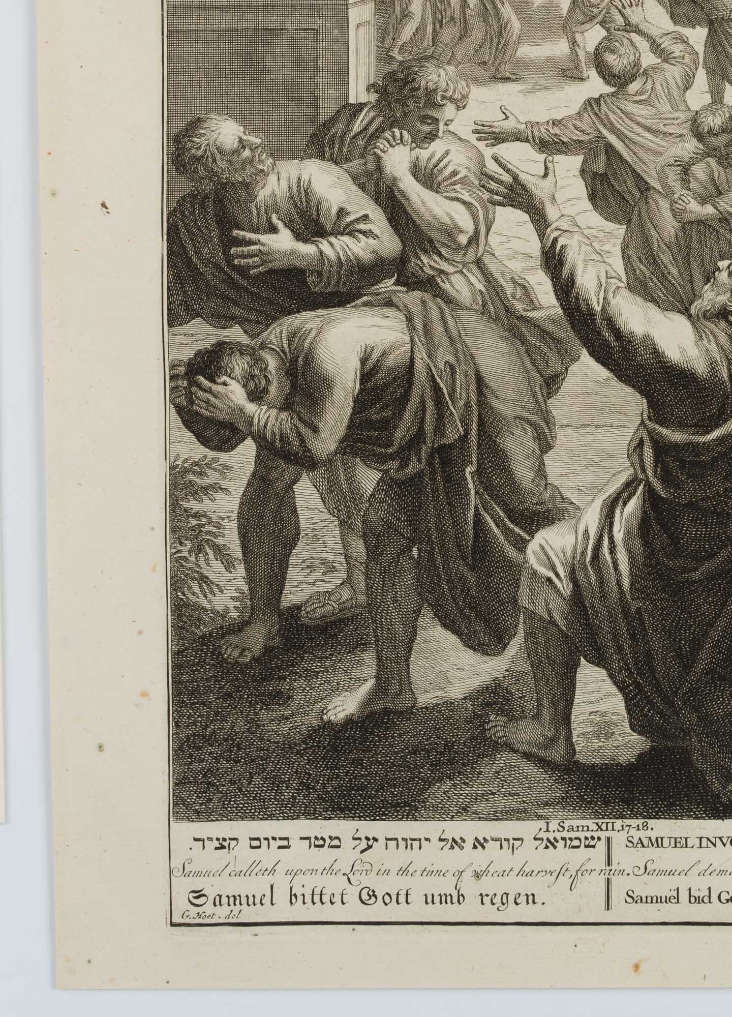 Louis Surugue (1686 Paris – 1762 Grand Vaux) nach Gerard Hoet (1648 Zaltbommel – 1733 Den Haag), Samuel bittet Gott um Regen, um 1700, Kupferstich