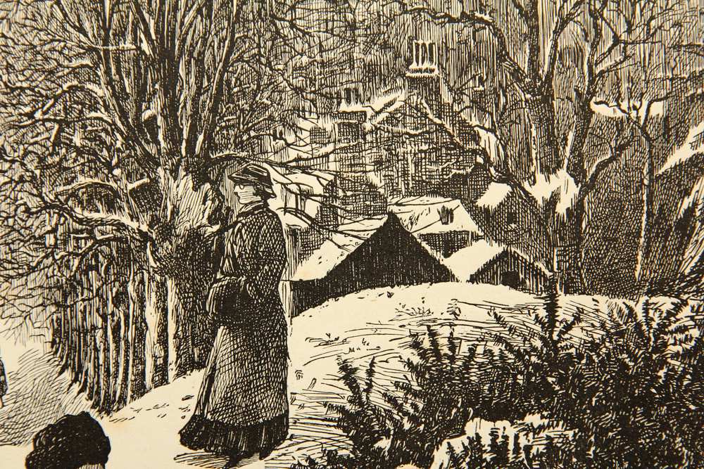 Joseph Swain (1820 Oxford – 1909 Ealing) after George Louis Palmella Busson DuMaurier (1834 Paris – 1896 ibid.), “Promenade D’Hiver”, Ladies on a Winter Walk, 19th century, Wood engraving