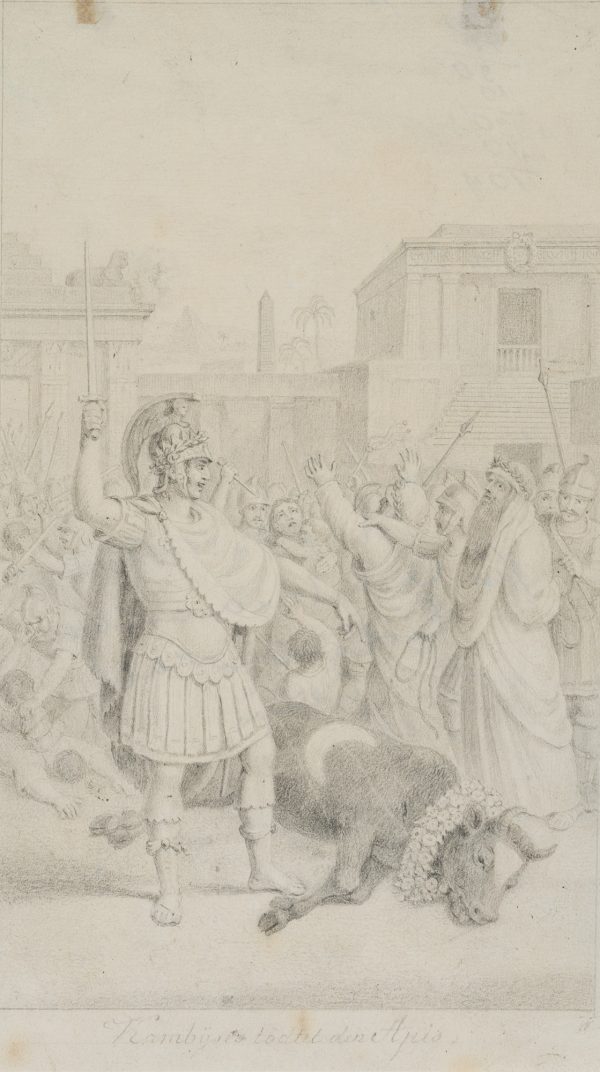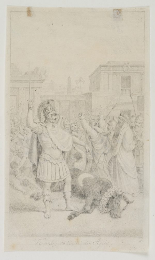 - Schlagworte: Heiliger Stier, Heiliges Tier, Apis, Perserkönig Kambyses , Sohn des Kyros II., achämenidischer König, Herodot, Herodots Erzählungen, Mythologie, Politik, Deutschland, Klassizismus, 1800-1849