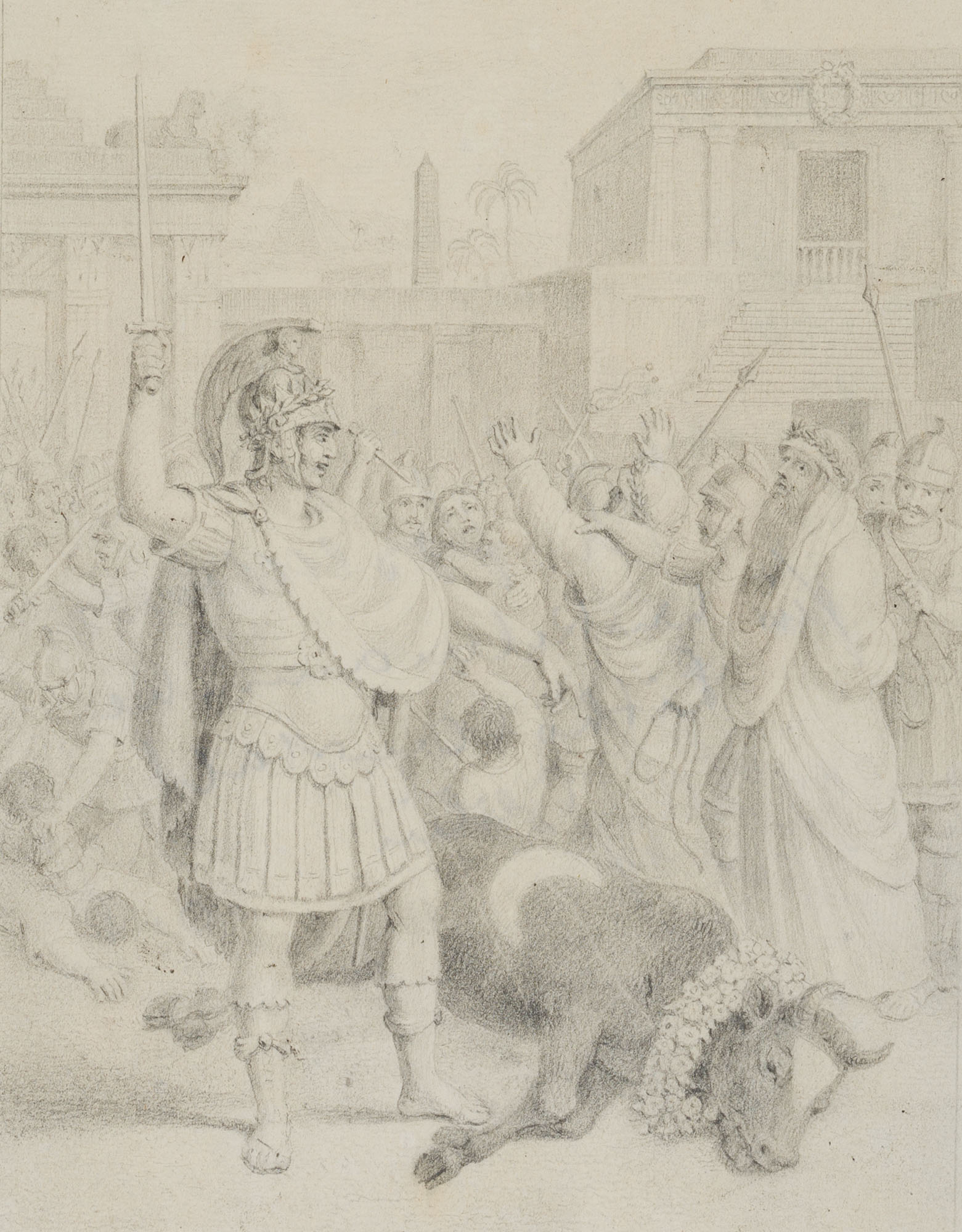 Theodor Hosemann (1807 Brandenburg (Havel) – 1875 Berlin), HOSEMANN, Cambyses II Kills the Holy Bull Apis, 19th century, Pencil
