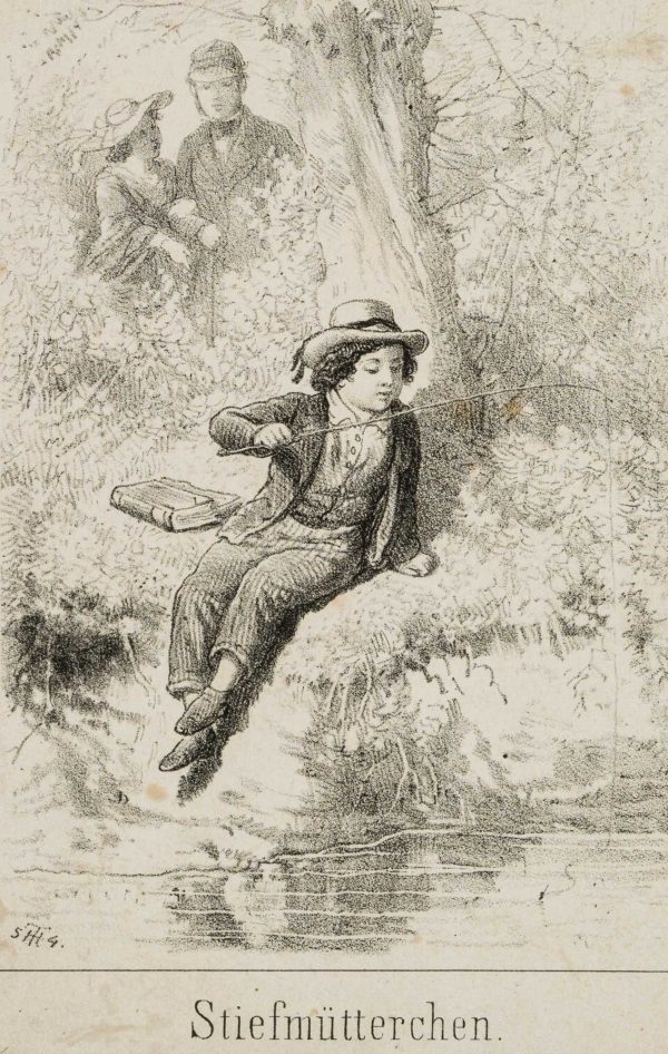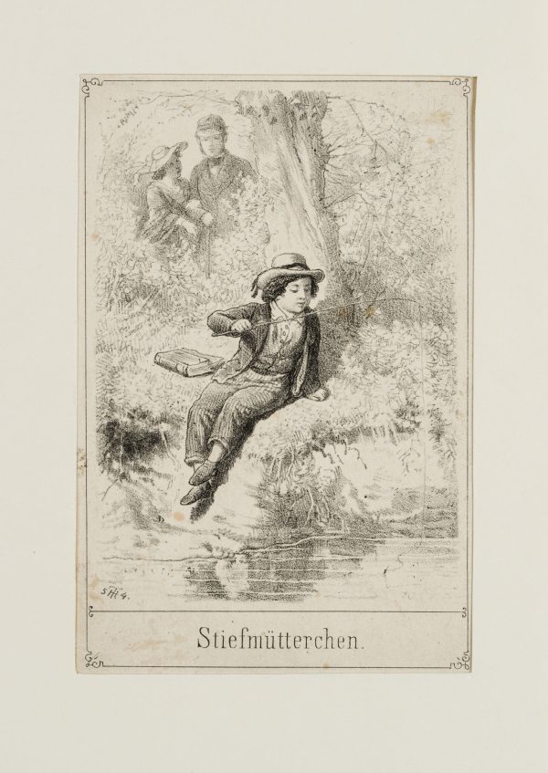 Theodor Hosemann (1807 Brandenburg (Havel) – 1875 Berlin), Stiefmütterchen, Der Angler, 1854, Lithographie