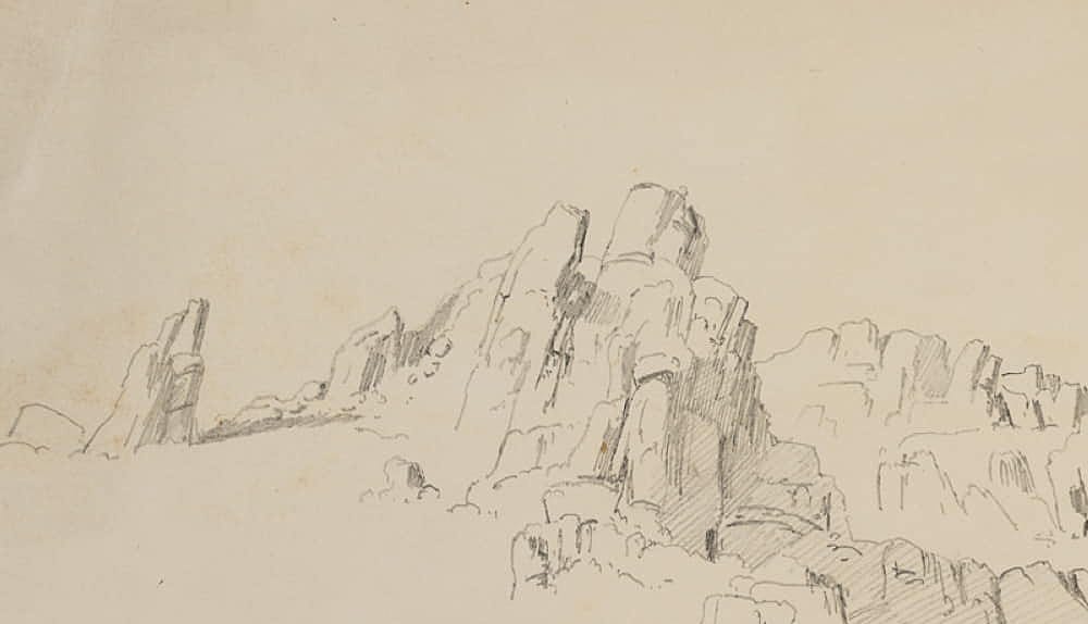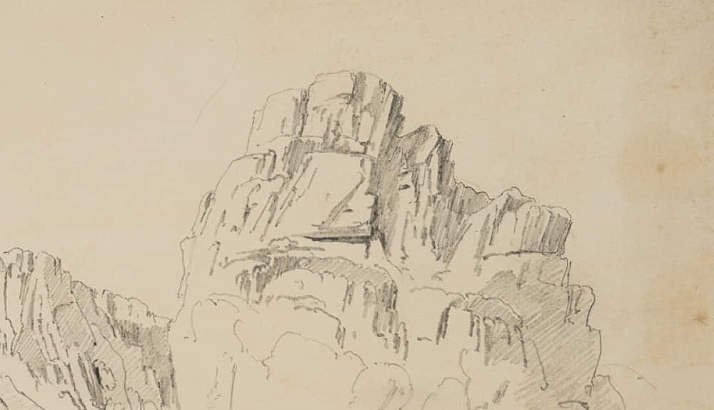 - Description: Detailed sketch of craggy rocks. Probably created during a journey in the Alpine region, South Tyrol, Tyrol, Austria or Switzerland.