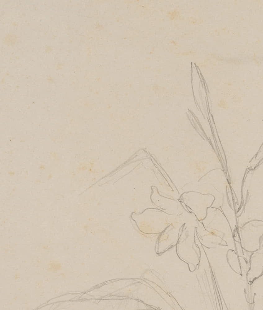 - Description: Botanical study with depiction of the characteristic features. On the verso is a sketch of another plant and a handwritten inscription.