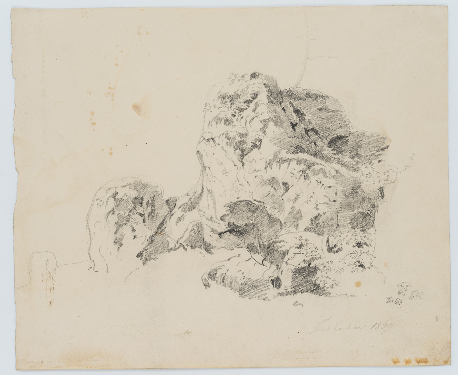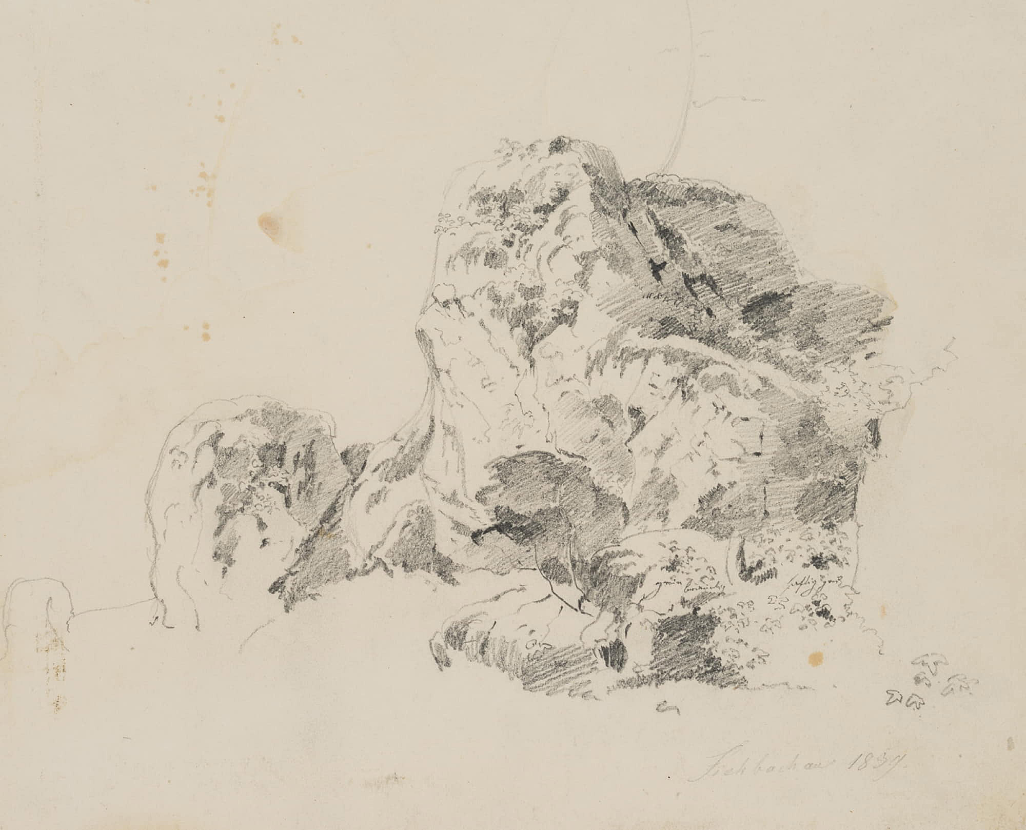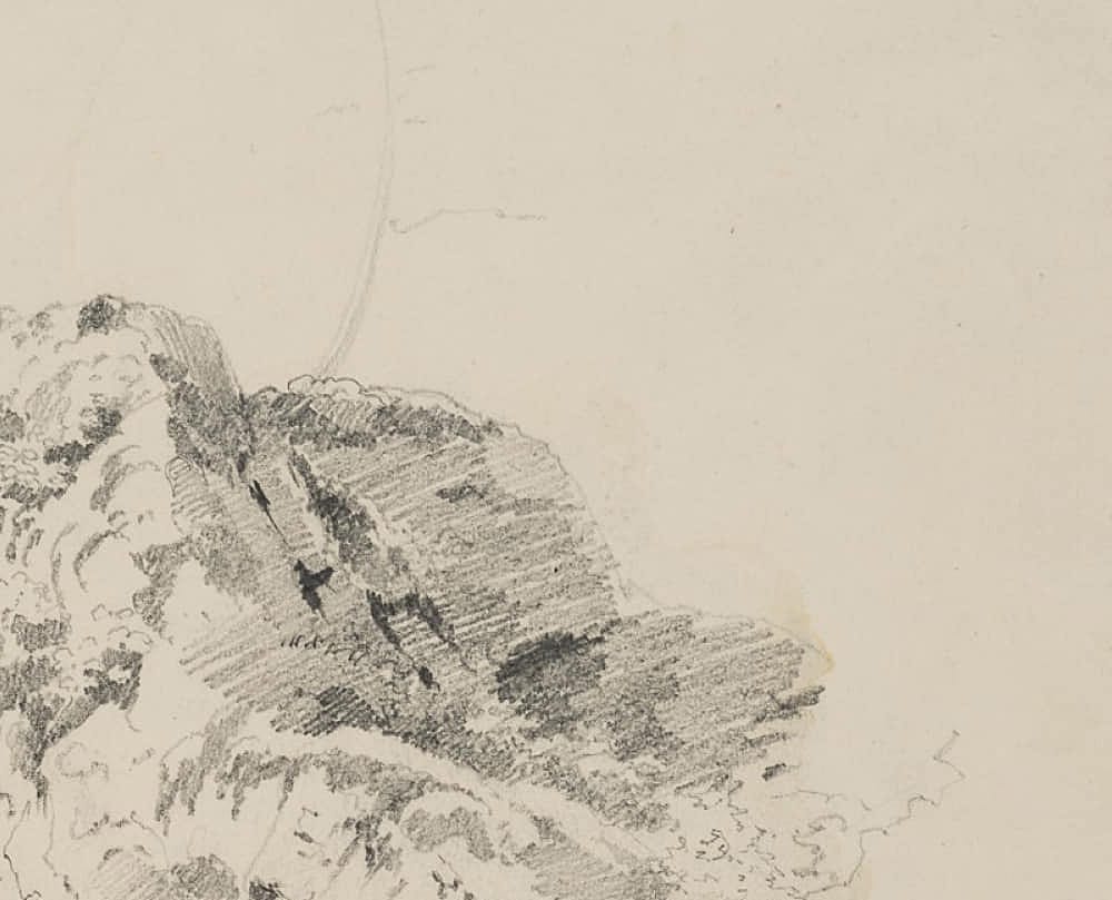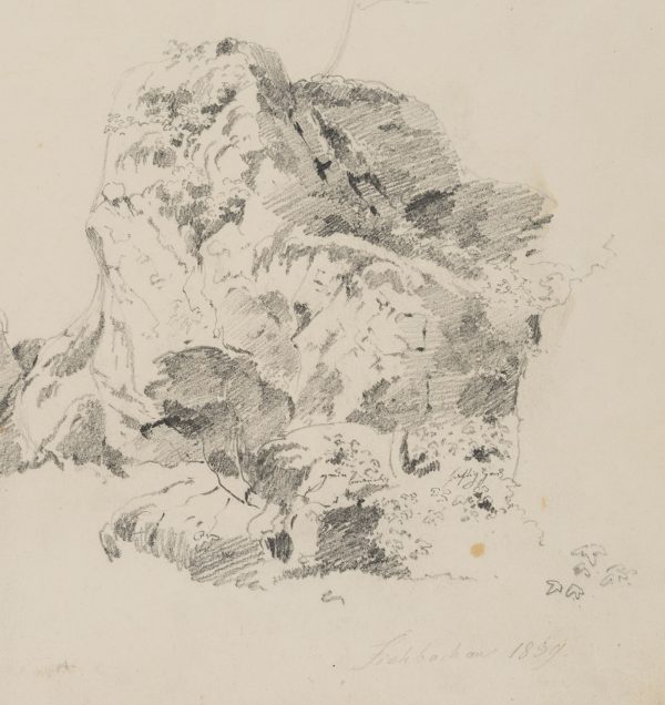 Therese Weber (1813 Nymphenburg – 1875 München), Natustudie, Felsen bei Fischbachau, Oberbayern, 1859, Bleistift