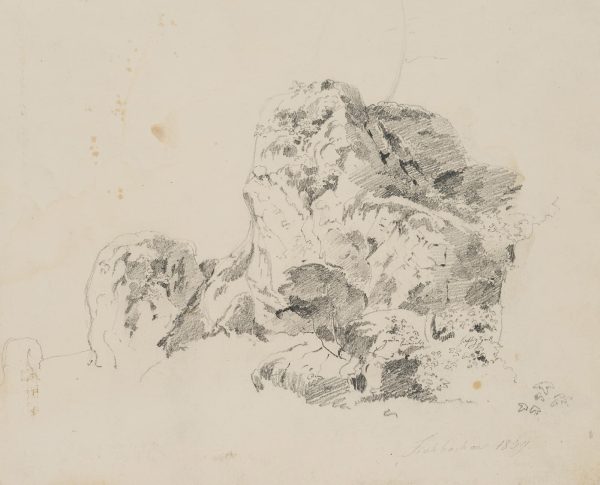 Therese Weber (1813 Nymphenburg – 1875 Munich), Nature study, rocks near Fischbachau, Upper Bavaria, 1859, Pencil