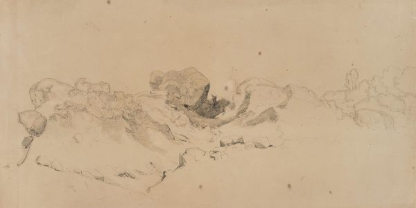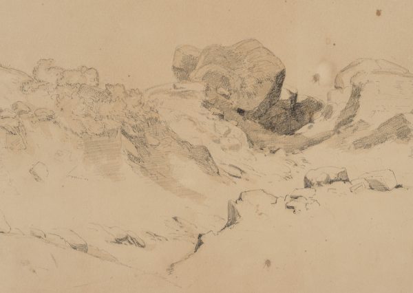 Therese Weber (1813 Nymphenburg – 1875 München), Felsenstudie in Landschaft, 19. Jahrhundert, Bleistift