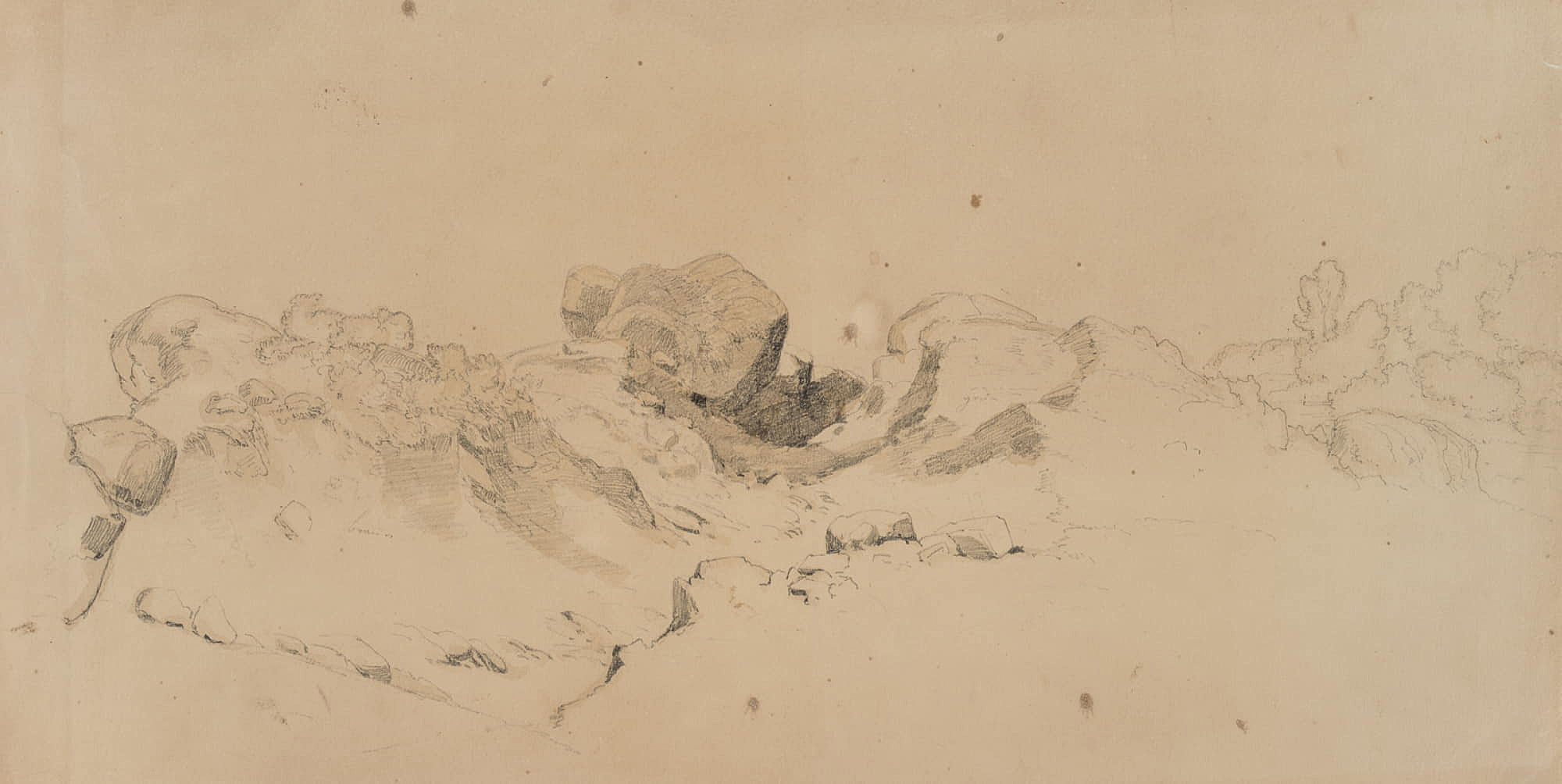 Therese Weber (1813 Nymphenburg – 1875 Munich), Rock study in landscape, 19th century, Pencil