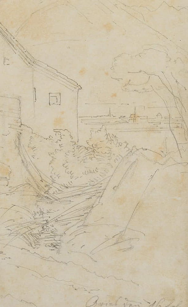 Therese Weber (1813 Nymphenburg – 1875 Munich), Church in Gmünd, Austria, 1864, Pencil