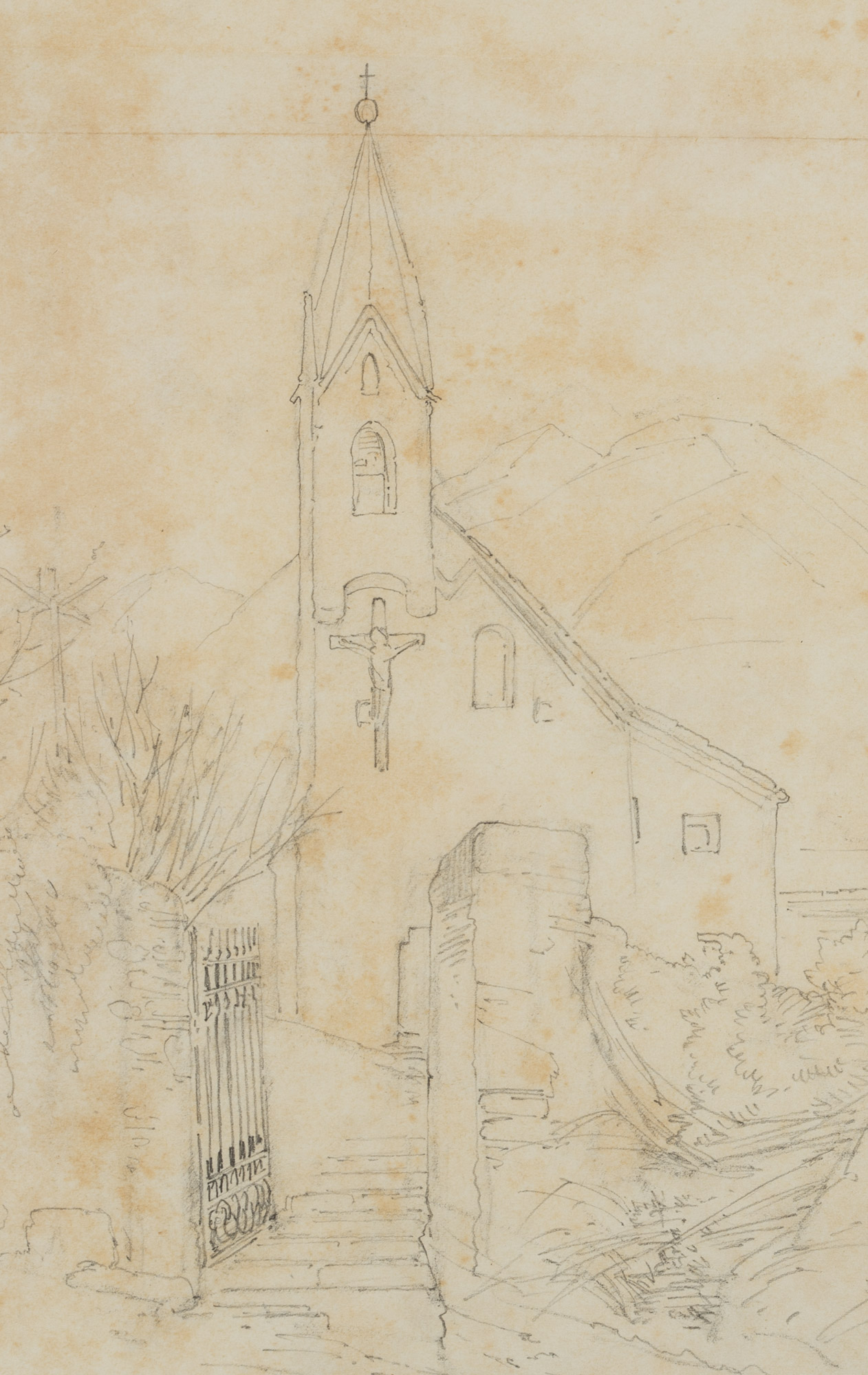 Therese Weber (1813 Nymphenburg – 1875 München), Kirche in Gmünd, Österreich, 1864, Bleistift
