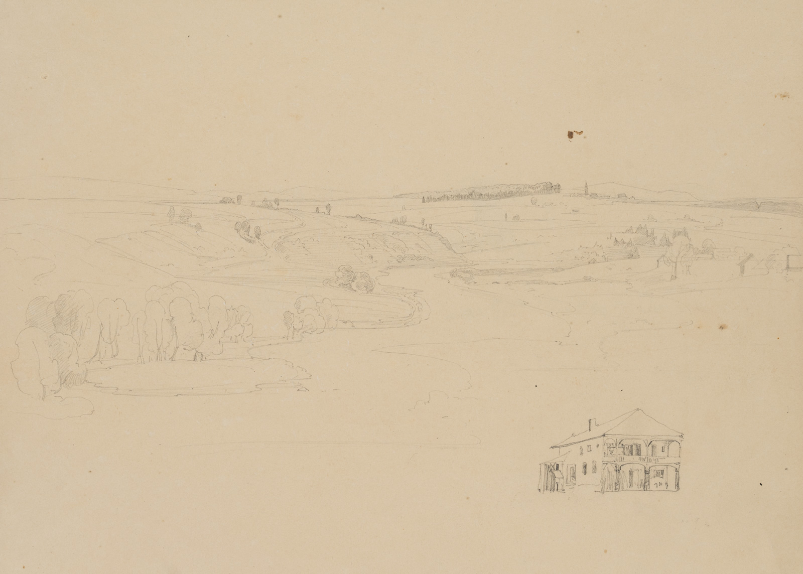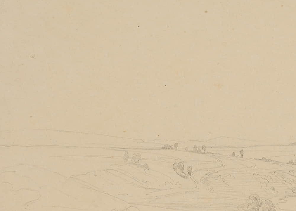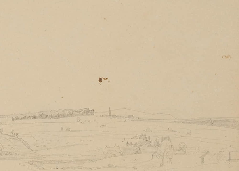 Therese Weber (1813 Nymphenburg – 1875 München), Landschaftsskizze, Süddeutsche Landschaft, 19. Jahrhundert, Bleistift