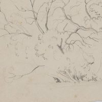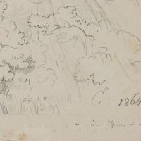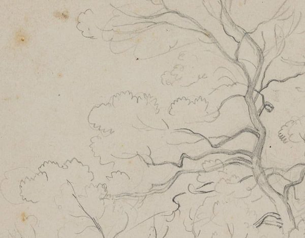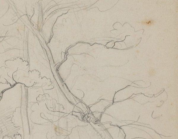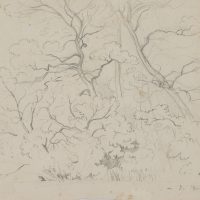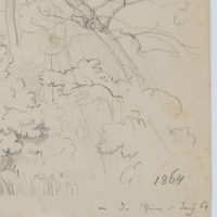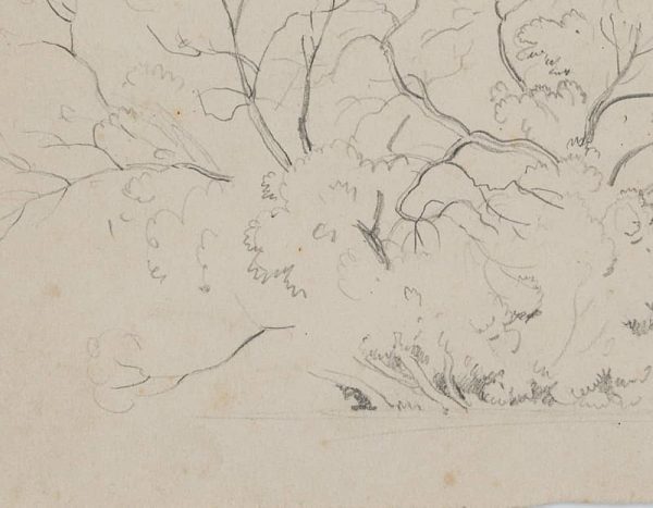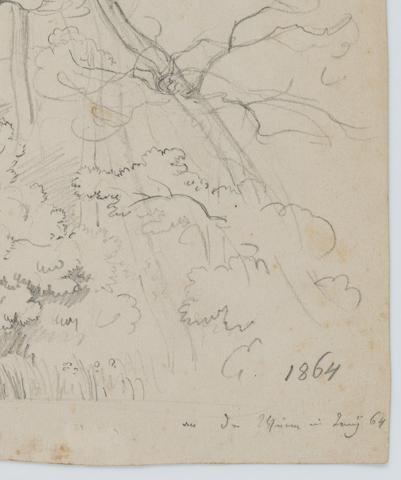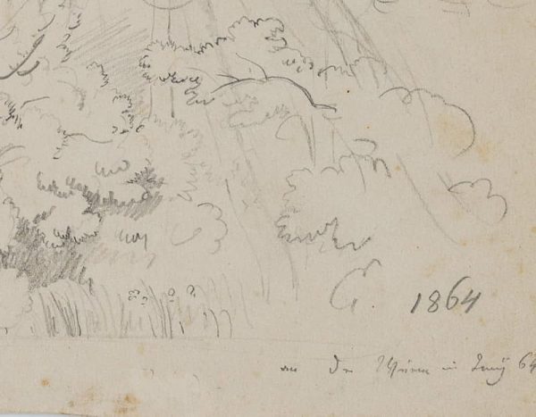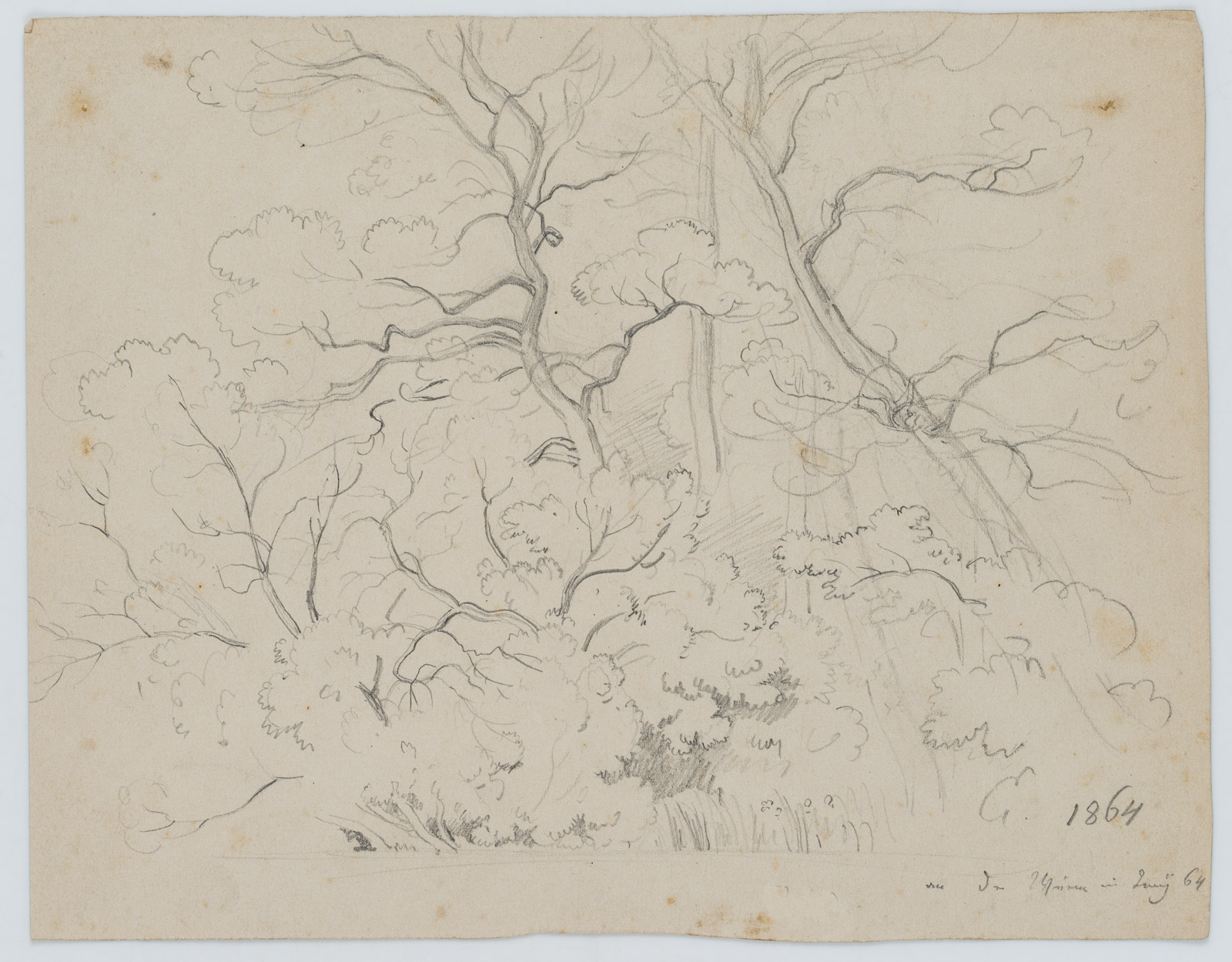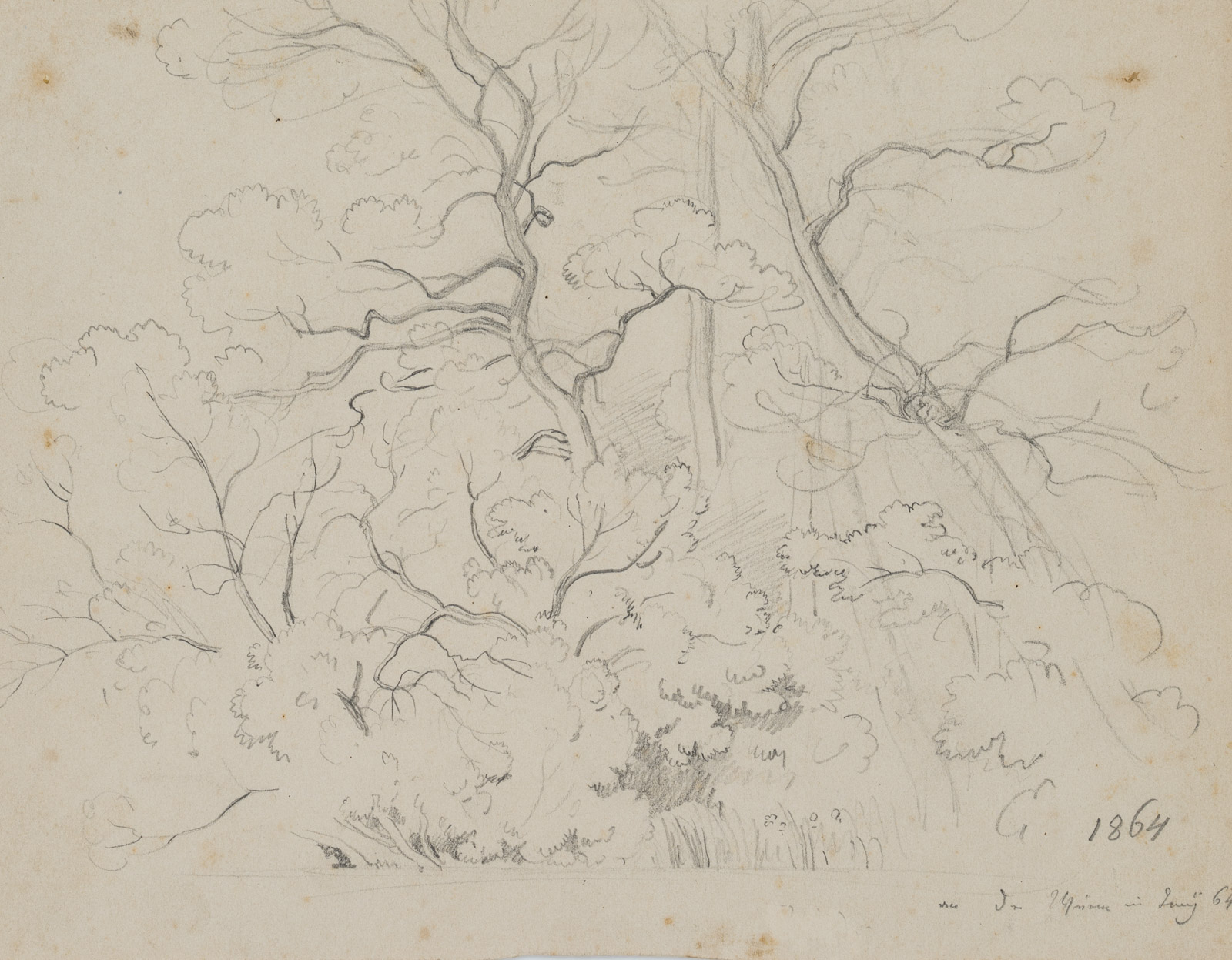 Therese Weber (1813 Nymphenburg – 1875 München), Naturskizze, Dickicht mit alten Bäumen, 1864, Bleistift