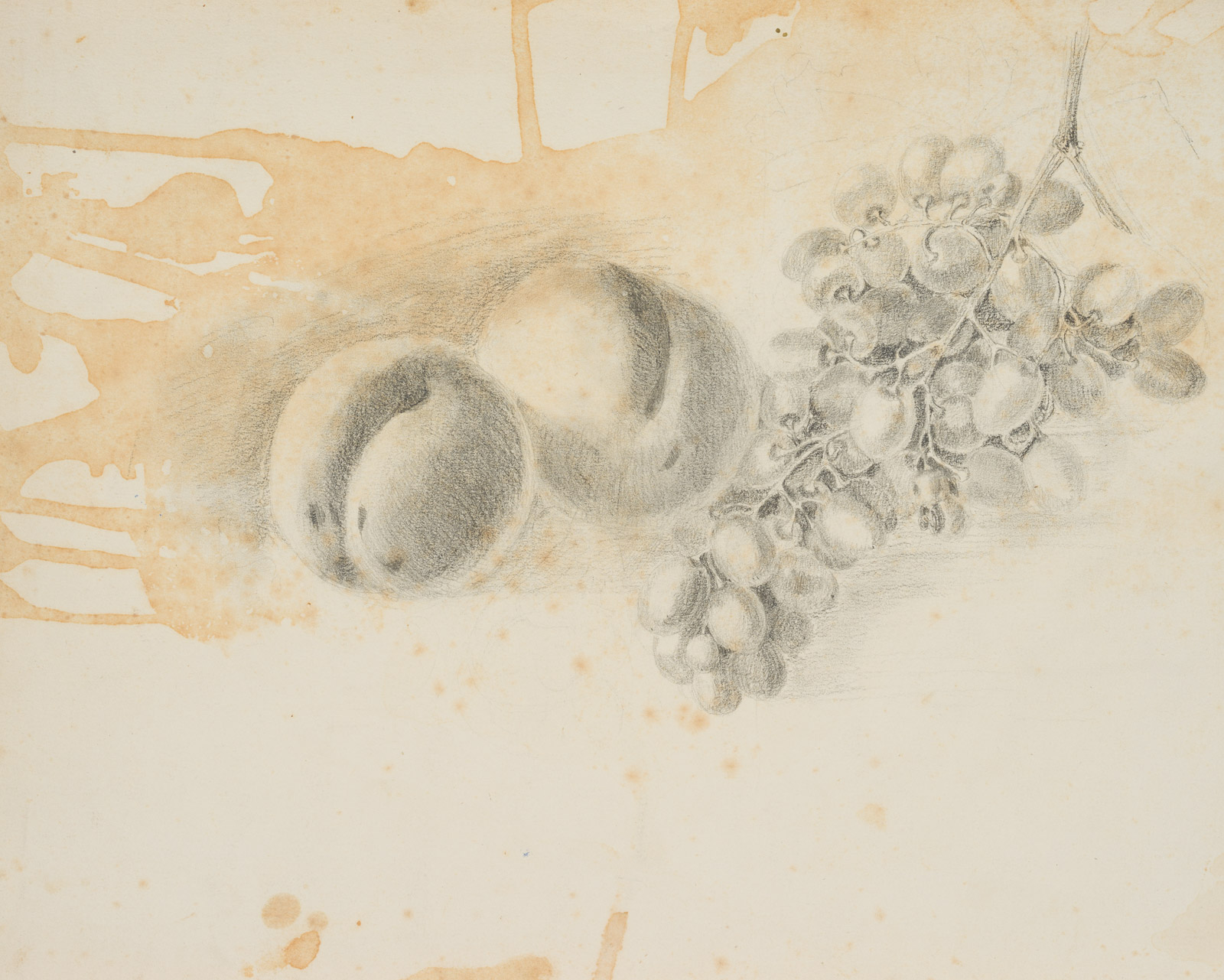 Therese Weber (1813 Nymphenburg – 1875 München), Pfirsiche und Trauben, 19. Jahrhundert, Bleistift