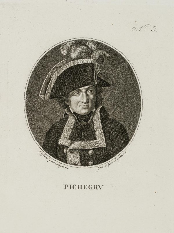 Portrait of Jean-Charles Pichegru (1761 Arbois-1804 Paris), French general of the Revolutionary Wars; promoted to Général de division in 1793; he played a leading role in the conquest of the Austrian Netherlands and Holland; he later conspired with the counter-revolutionaries and planned an assassination attempt against Napoleon Bonaparte; honours: On the Arc de Triomphe in Paris his name is inscribed in the third column; a statue was erected to him in Arbois in 1816. - Date: 19th century