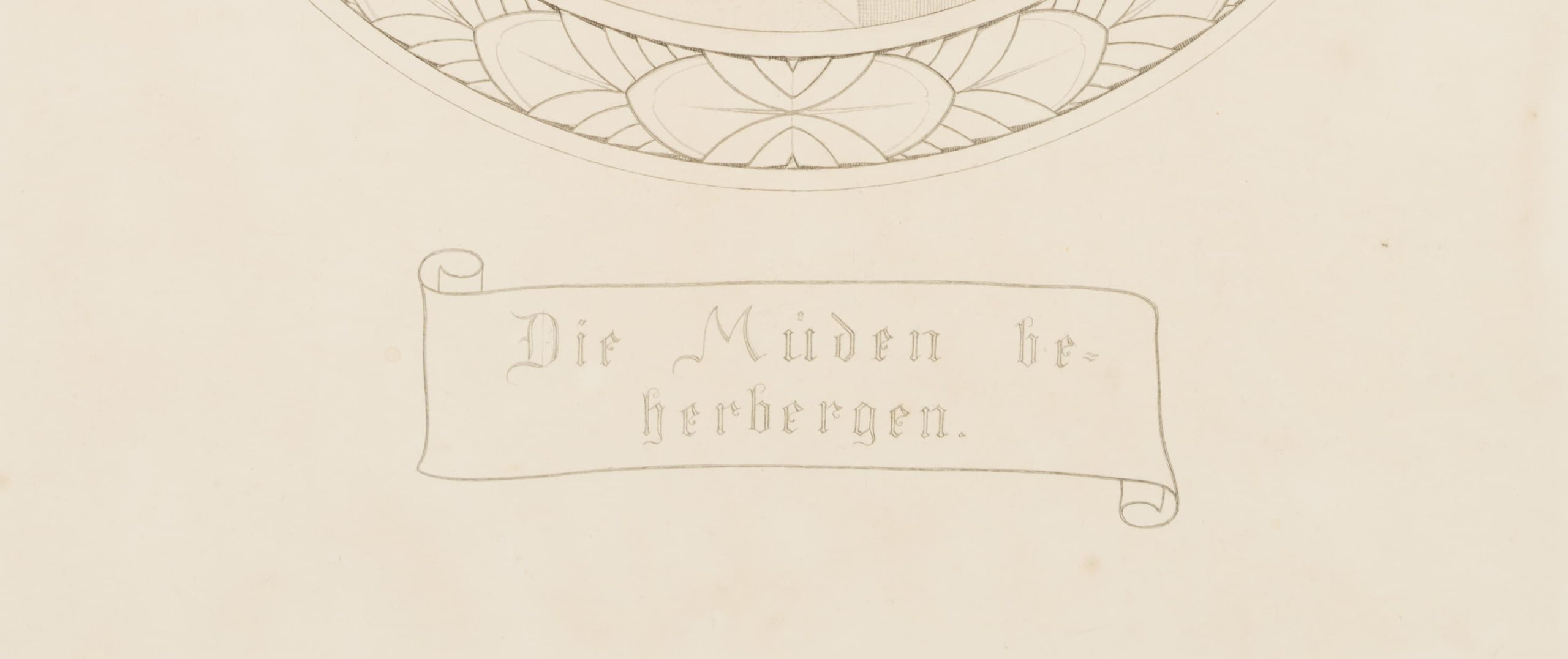 • Inscription: Upper left monogrammed: “CT”. Lower middle inscribed in the printing plate: “Die Müden beherbergen”. Upper left numbered in the printing plate: “No.CCX”. Upper left dated: “München 16.|1.55”.