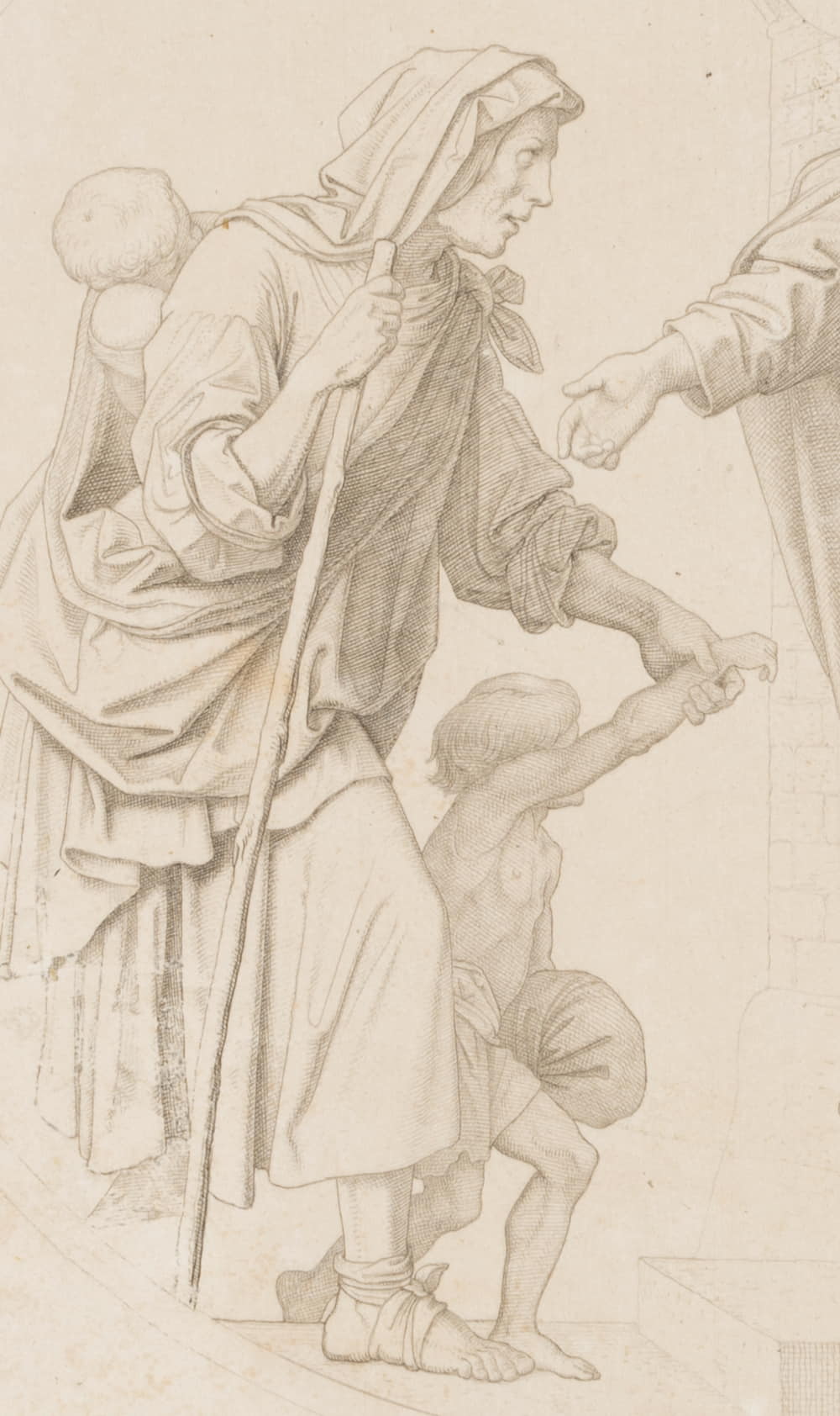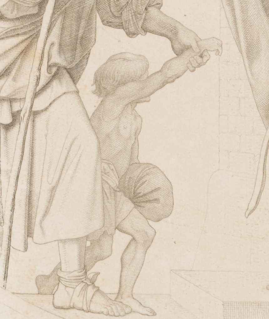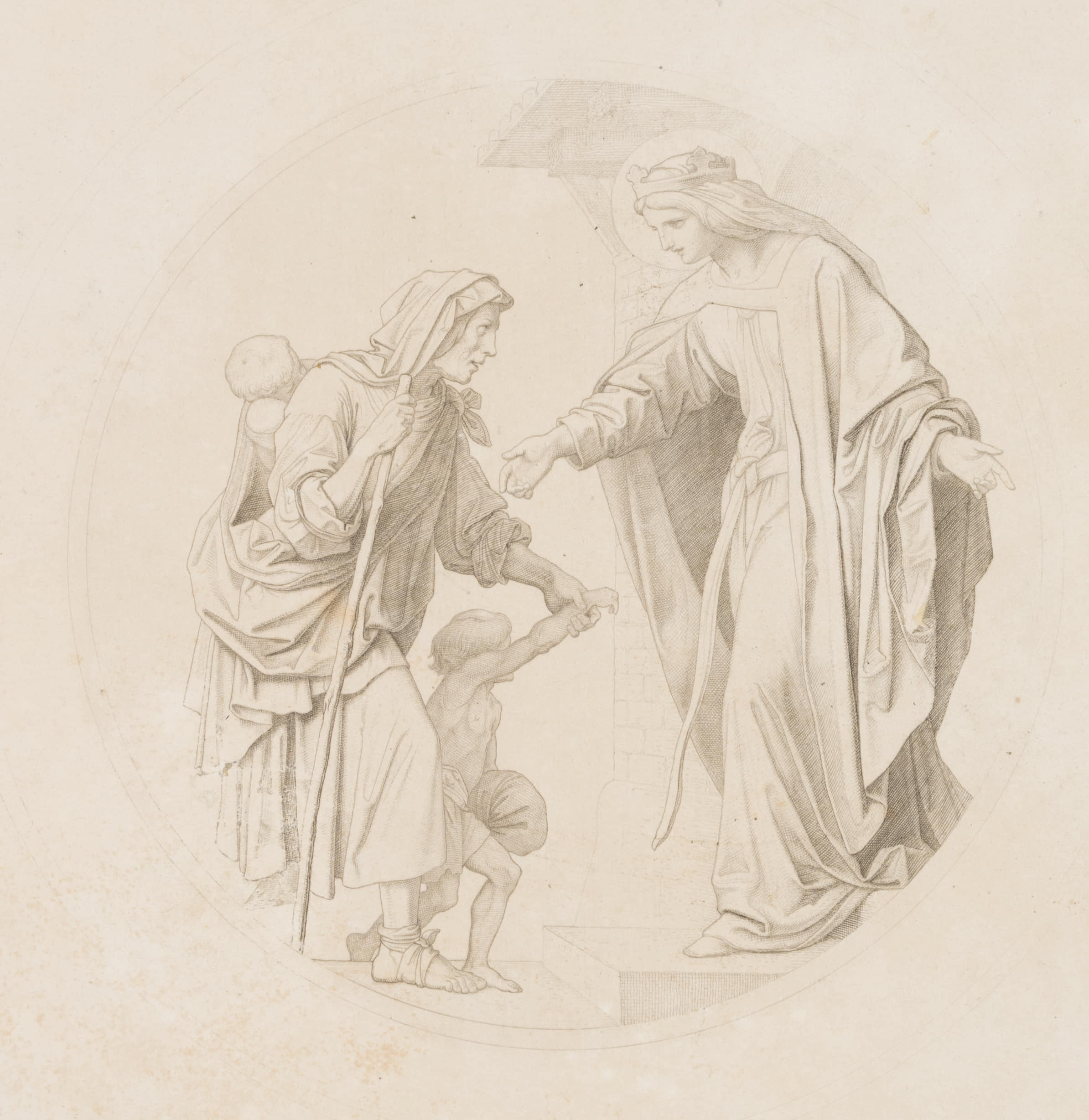 Julius Cäsar Thaeter (1804 Dresden – 1870 Munich) after Moritz von Schwind (1804 Vienna – 1871 Munich), 7 Works of Mercy, Lodging the Weary, 1855, Copper engraving