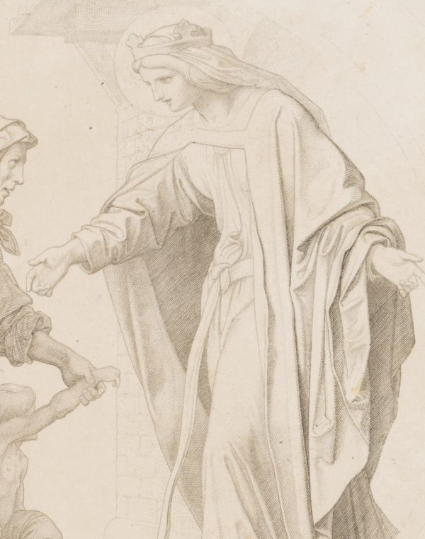 - Beschreibung: Darstellung nach den 1853/54 entstandenen Fresken für die Elisabeth-Galerie auf der Wartburg von Moritz von Schwind, die “Die sieben Werke der Barmherzigkeit” zeigen.