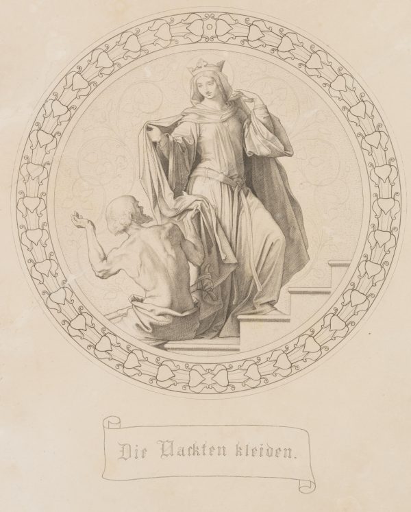 - Beschreibung: Darstellung nach den 1853/54 entstandenen Fresken für die Elisabeth-Galerie auf der Wartburg von Moritz von Schwind, die “Die sieben Werke der Barmherzigkeit” zeigen.
