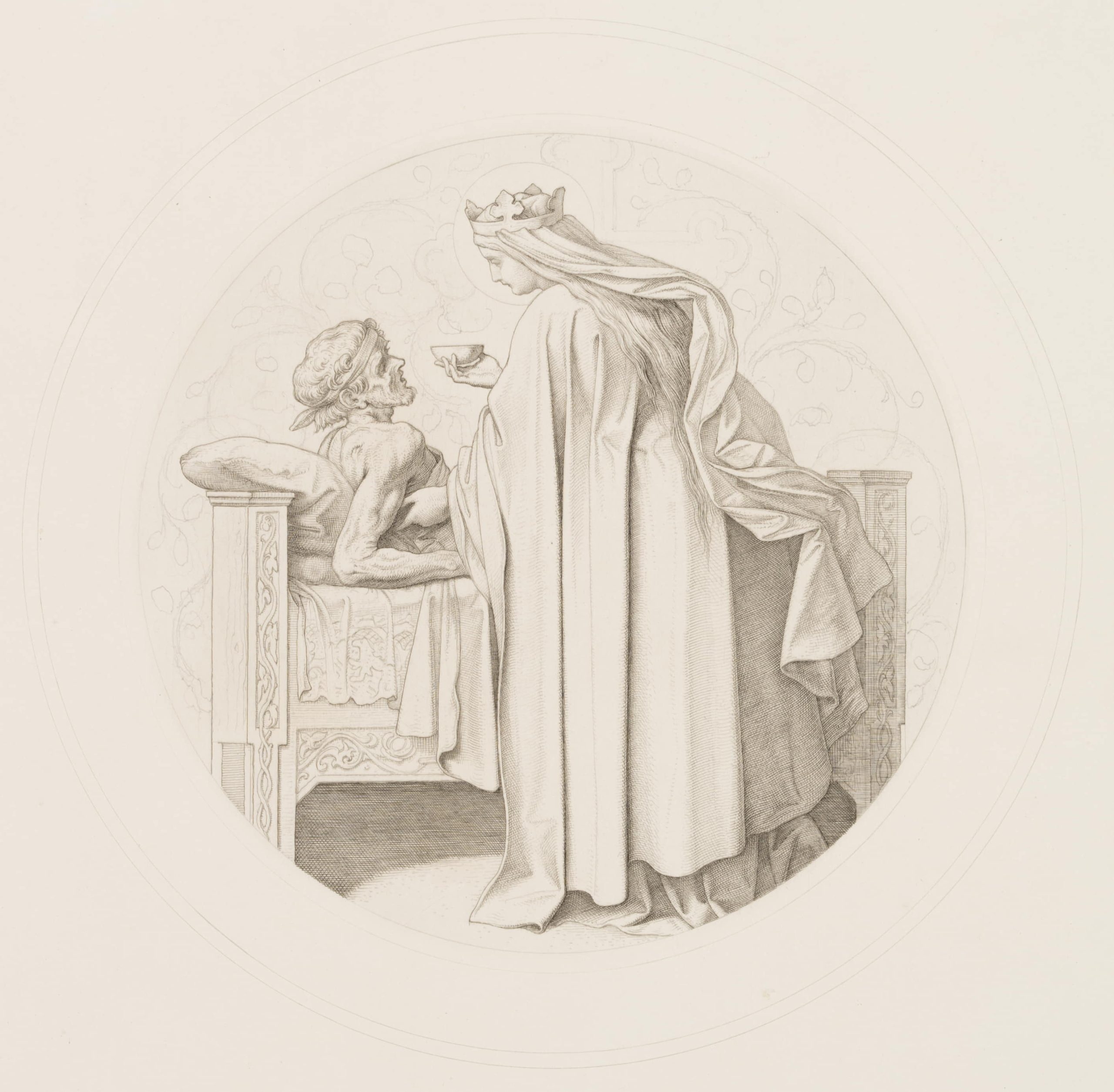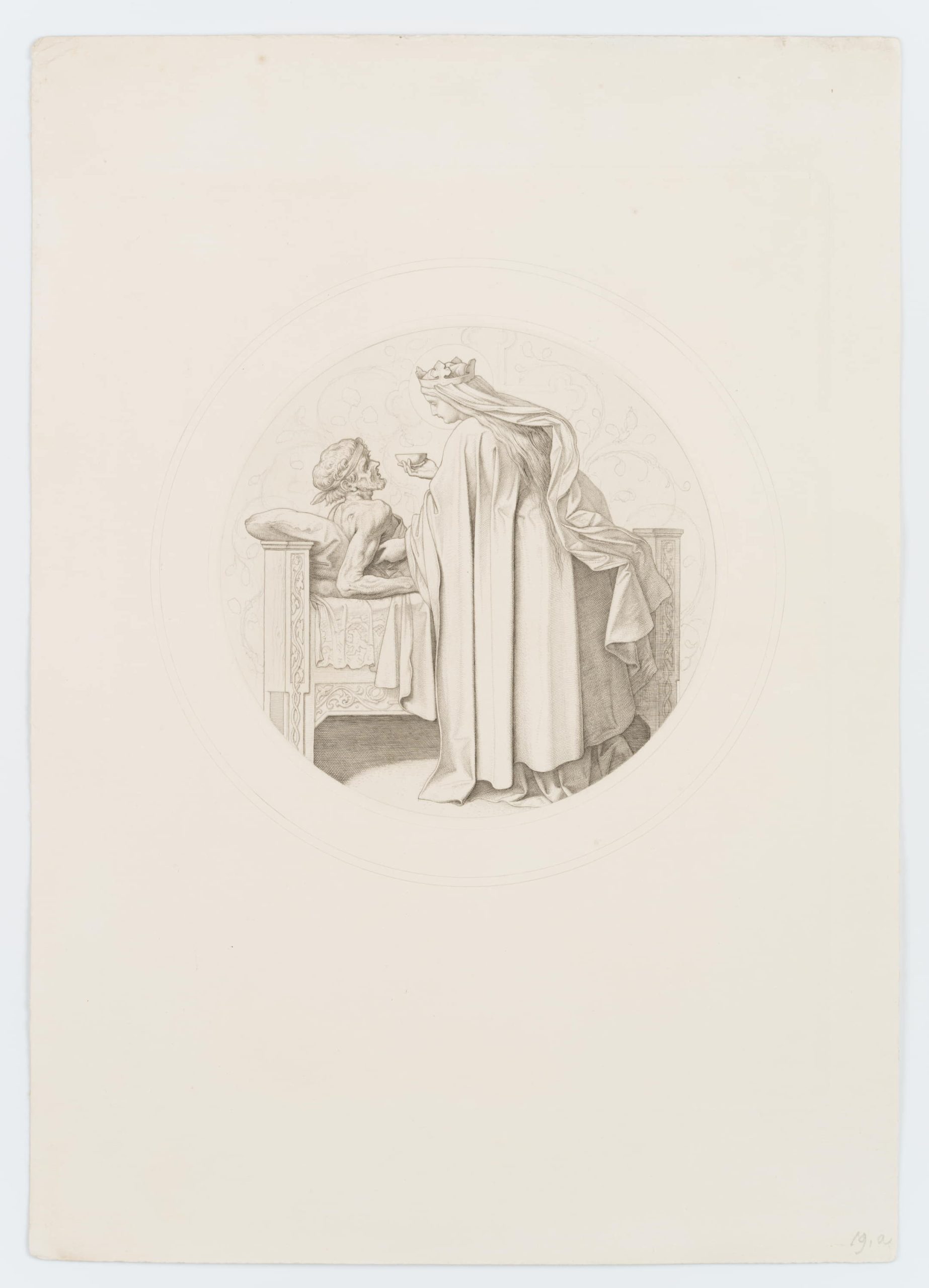 Julius Cäsar Thaeter (1804 Dresden – 1870 Munich) after Moritz von Schwind (1804 Vienna – 1871 Munich), 7 Works of Mercy, Caring for the Sick, Condition Pressure, c. 1855, Copper engraving