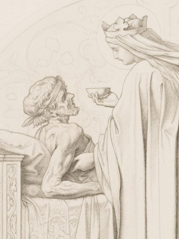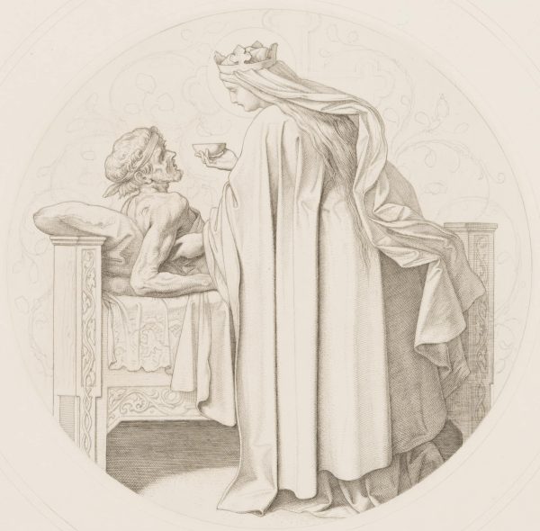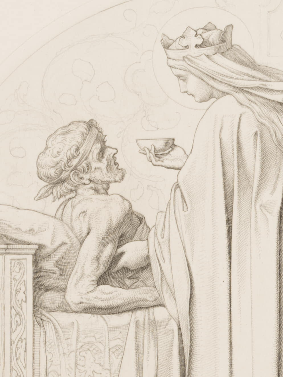 - Description: Depiction after the frescoes painted in 1853/54 for the Elisabeth Gallery at Wartburg Castle by Moritz von Schwind, showing “The Seven Works of Mercy”.