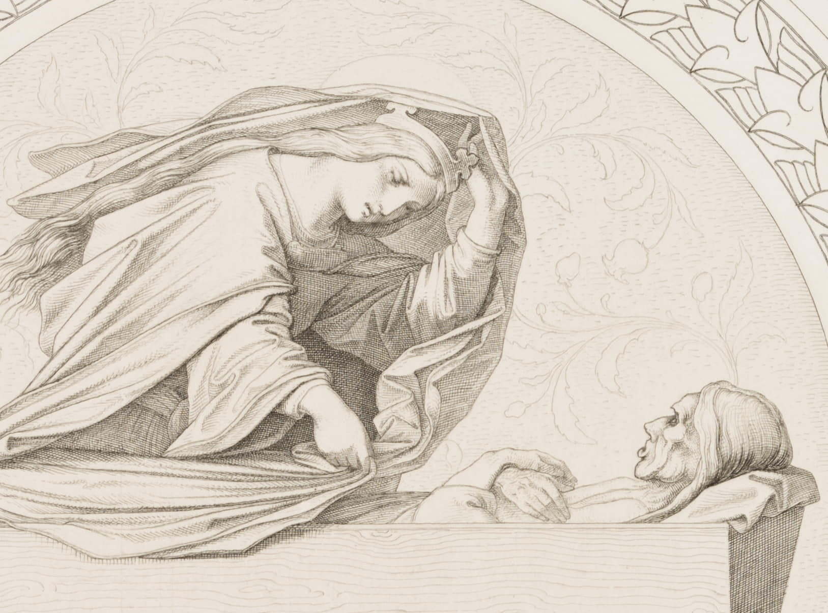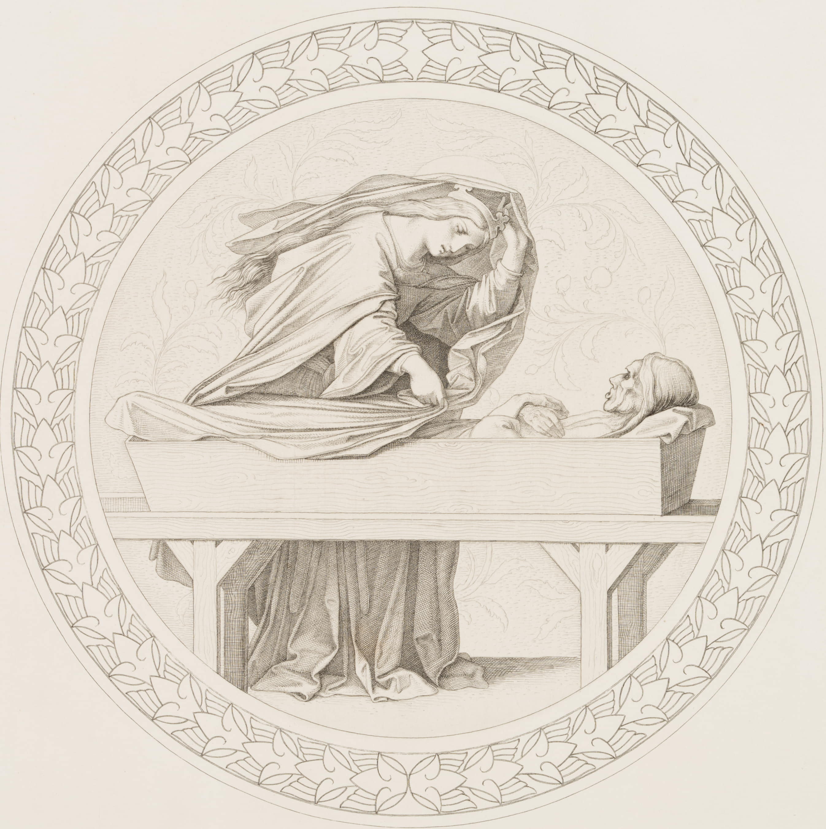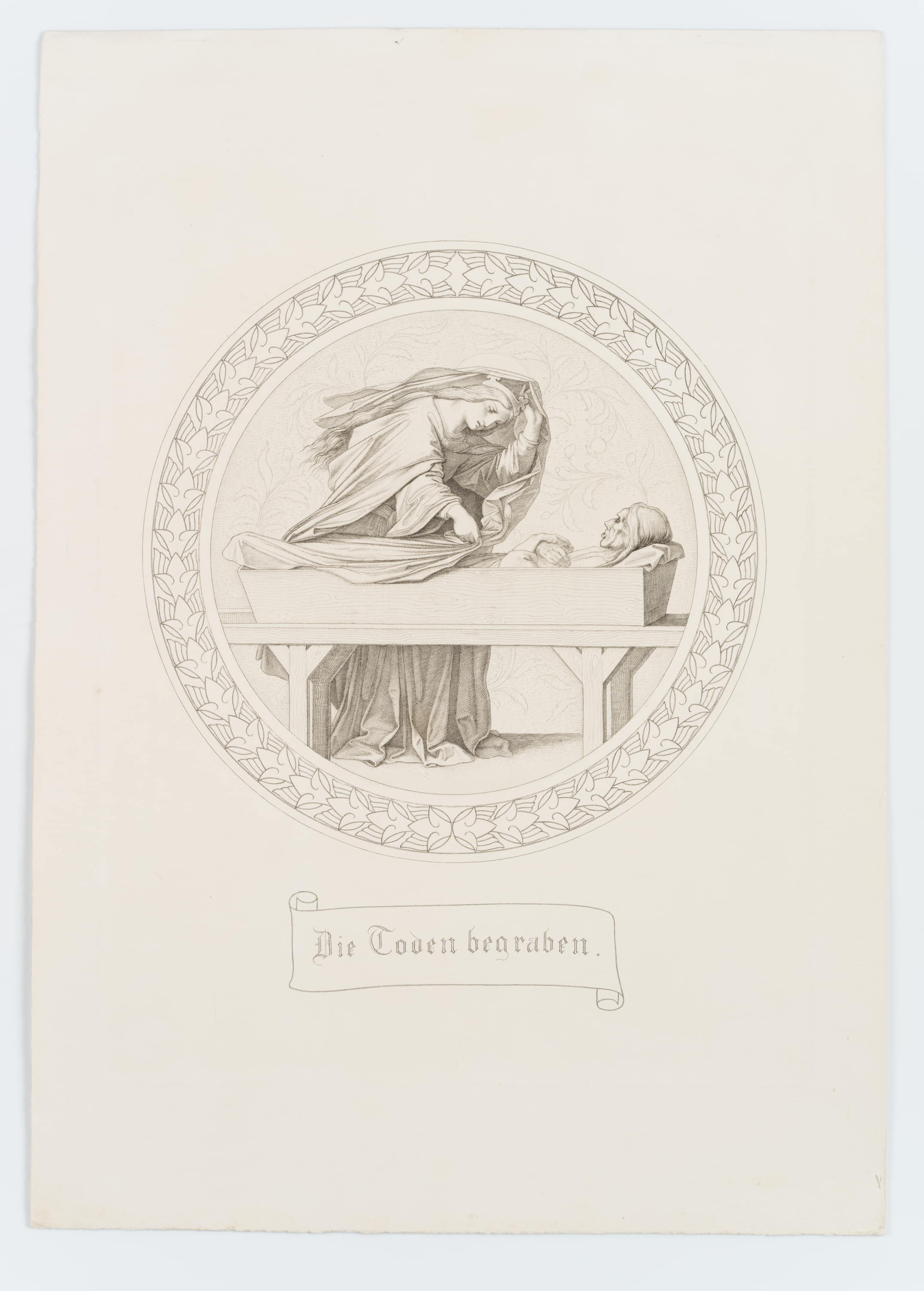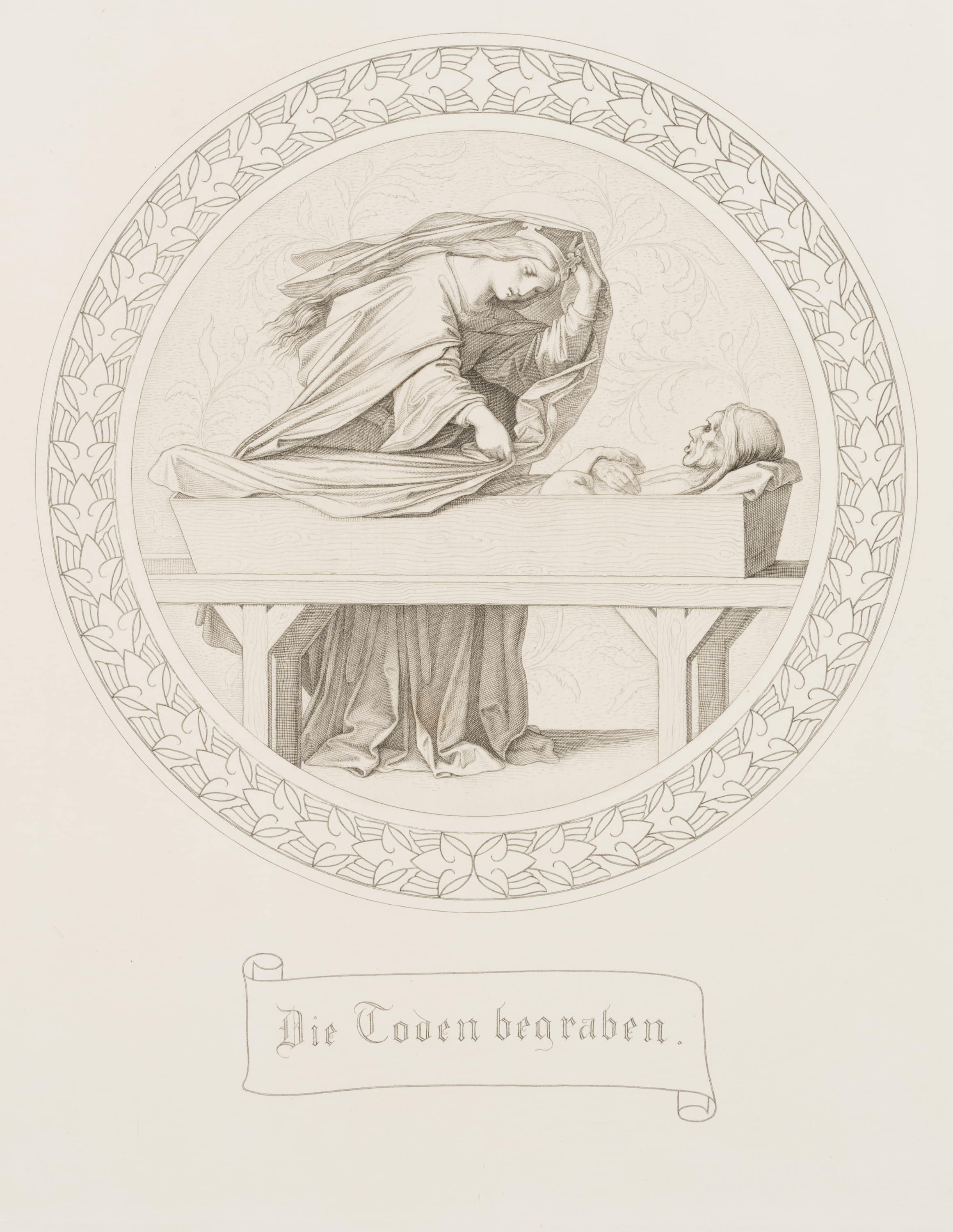 Julius Cäsar Thaeter (1804 Dresden – 1870 Munich) after Moritz von Schwind (1804 Vienna – 1871 Munich), 7 Works of Mercy, Burying the Dead, c. 1855, Copper engraving