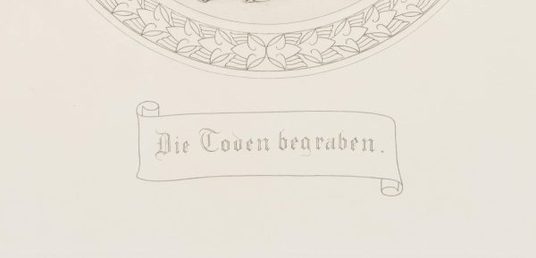 - Inscription: Lower middle inscribed in the printing plate: “Die Toden begraben.”.
