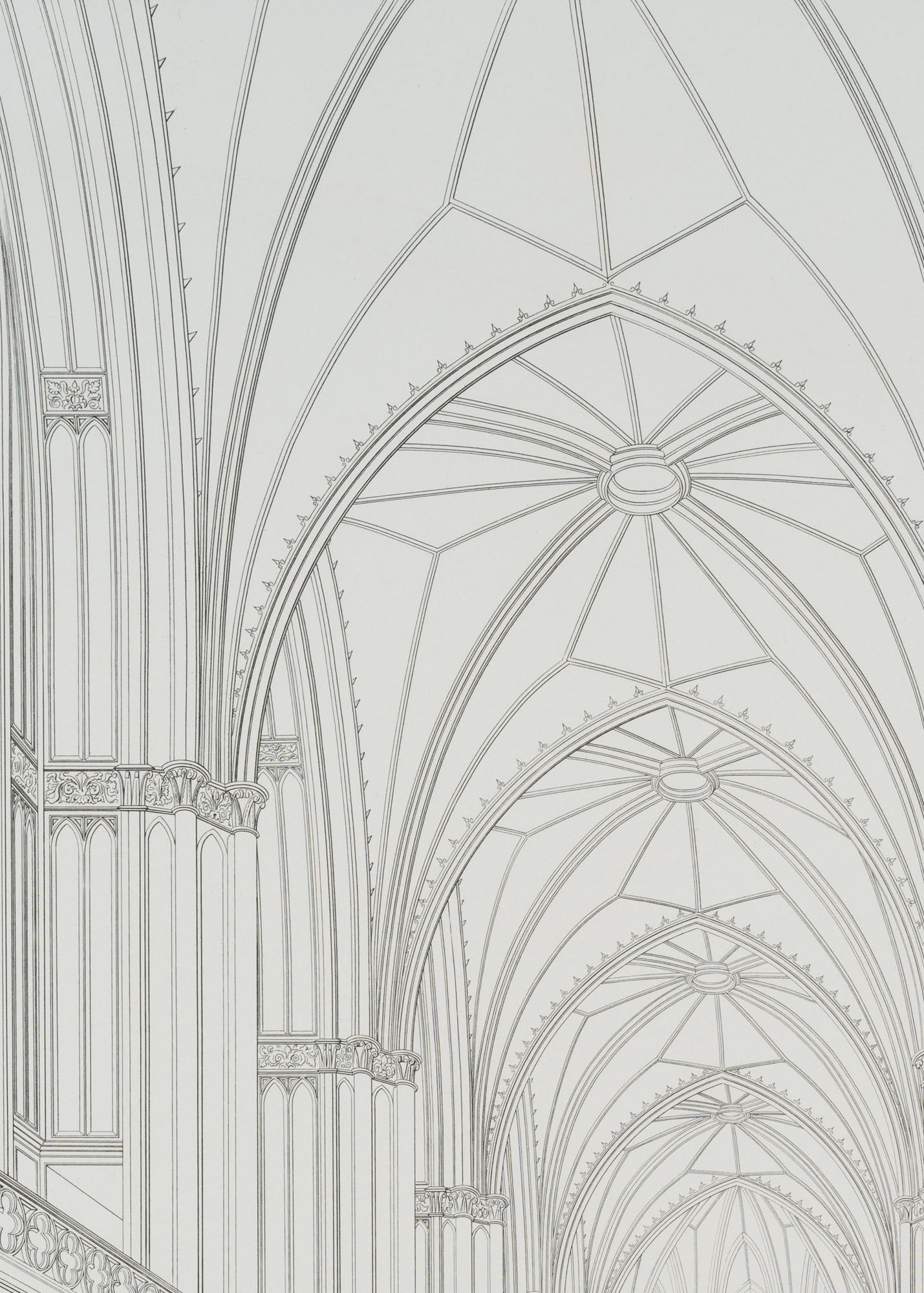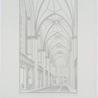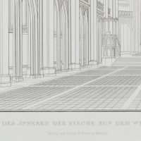 Karl Friedrich Thiele (1780 – 1836 ibid.) after Karl Friedrich Schinkel (1781 Neuruppin – 1841 Berlin), Perspective view of the interior of the church on the Werderscher Markt in Berlin, architectural drawing, No 88,, c. 1858, Etching