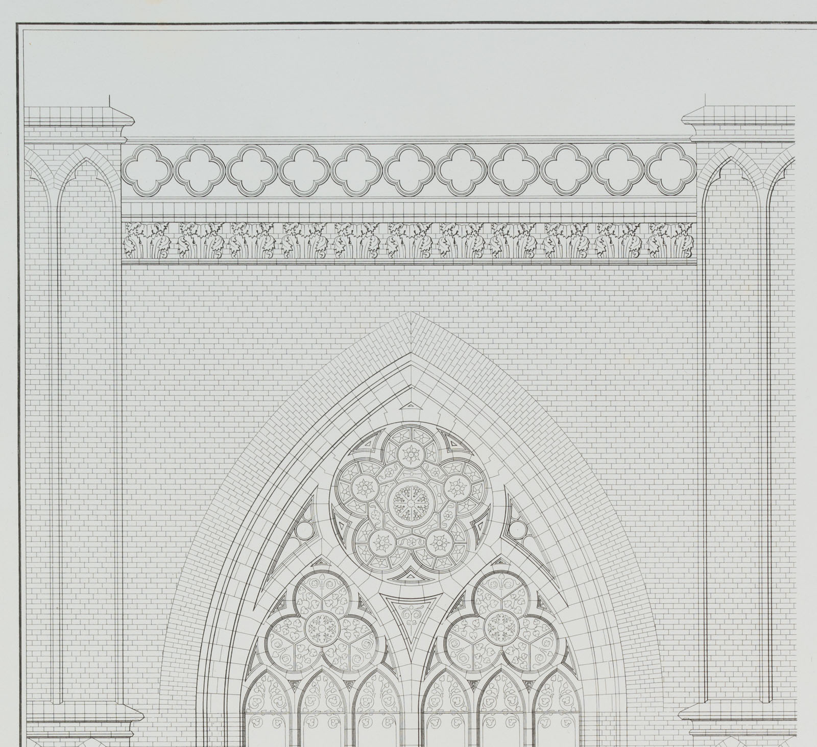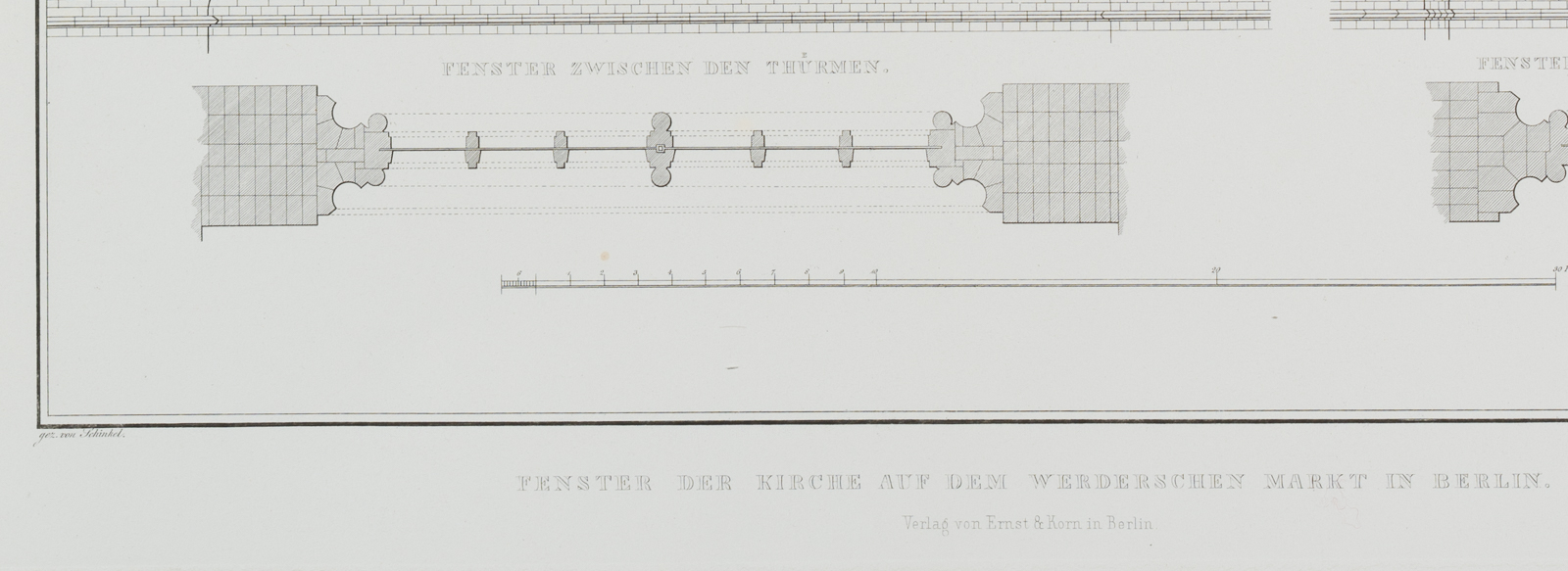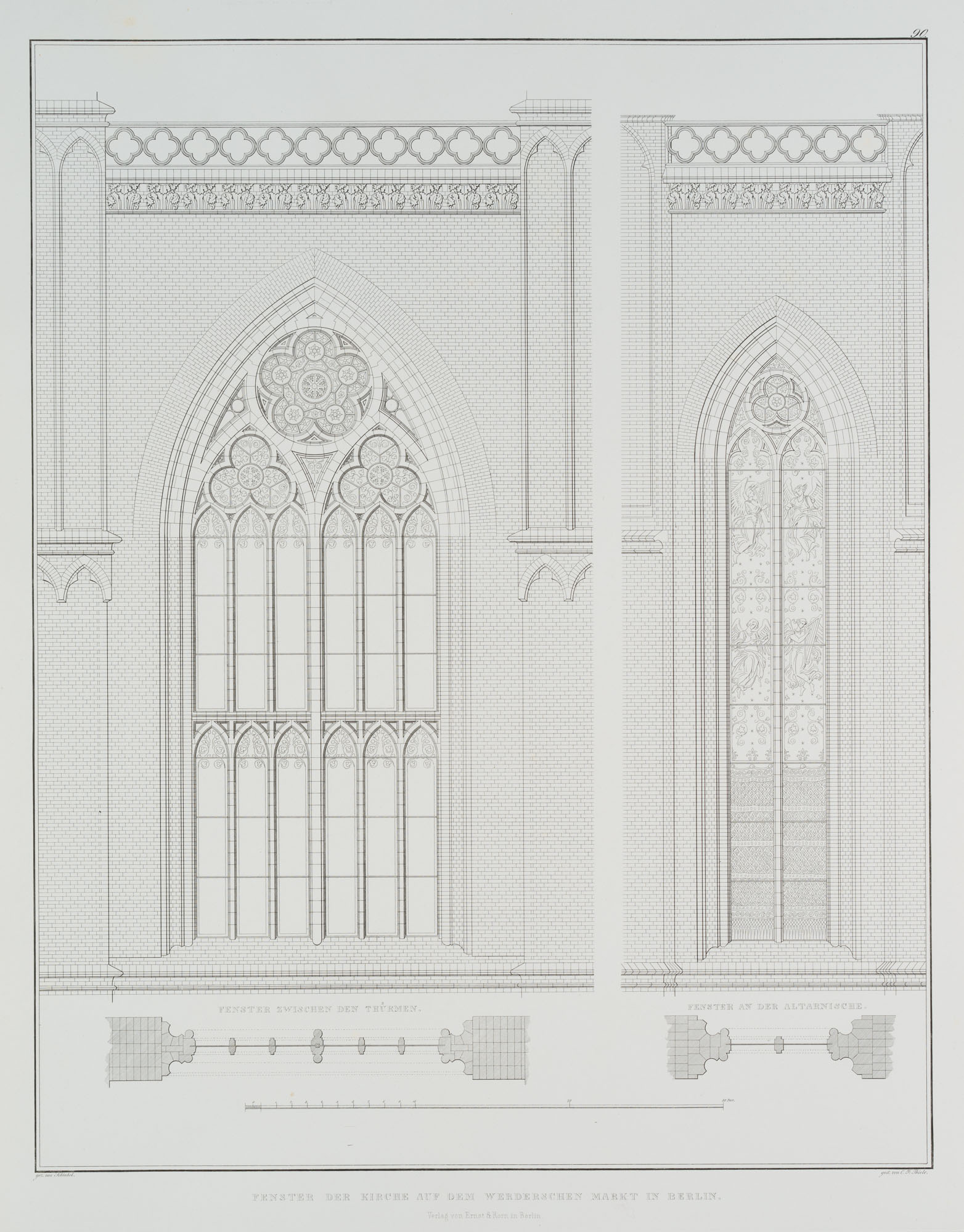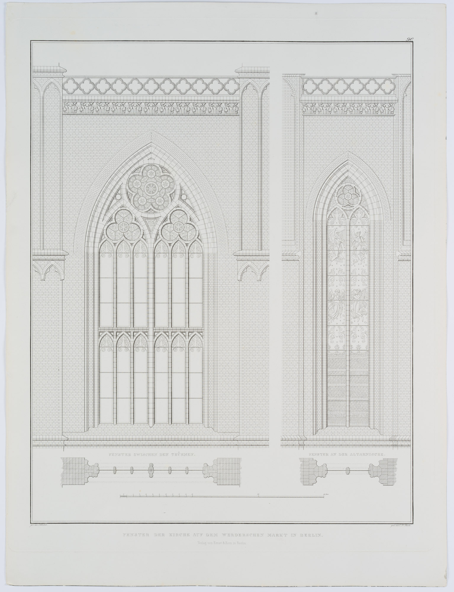 Karl Friedrich Thiele (1780 – 1836 ibid.) after Karl Friedrich Schinkel (1781 Neuruppin – 1841 Berlin), Windows of the church on the Werderscher Markt in Berlin, architectural drawing, c. 1858, Etching