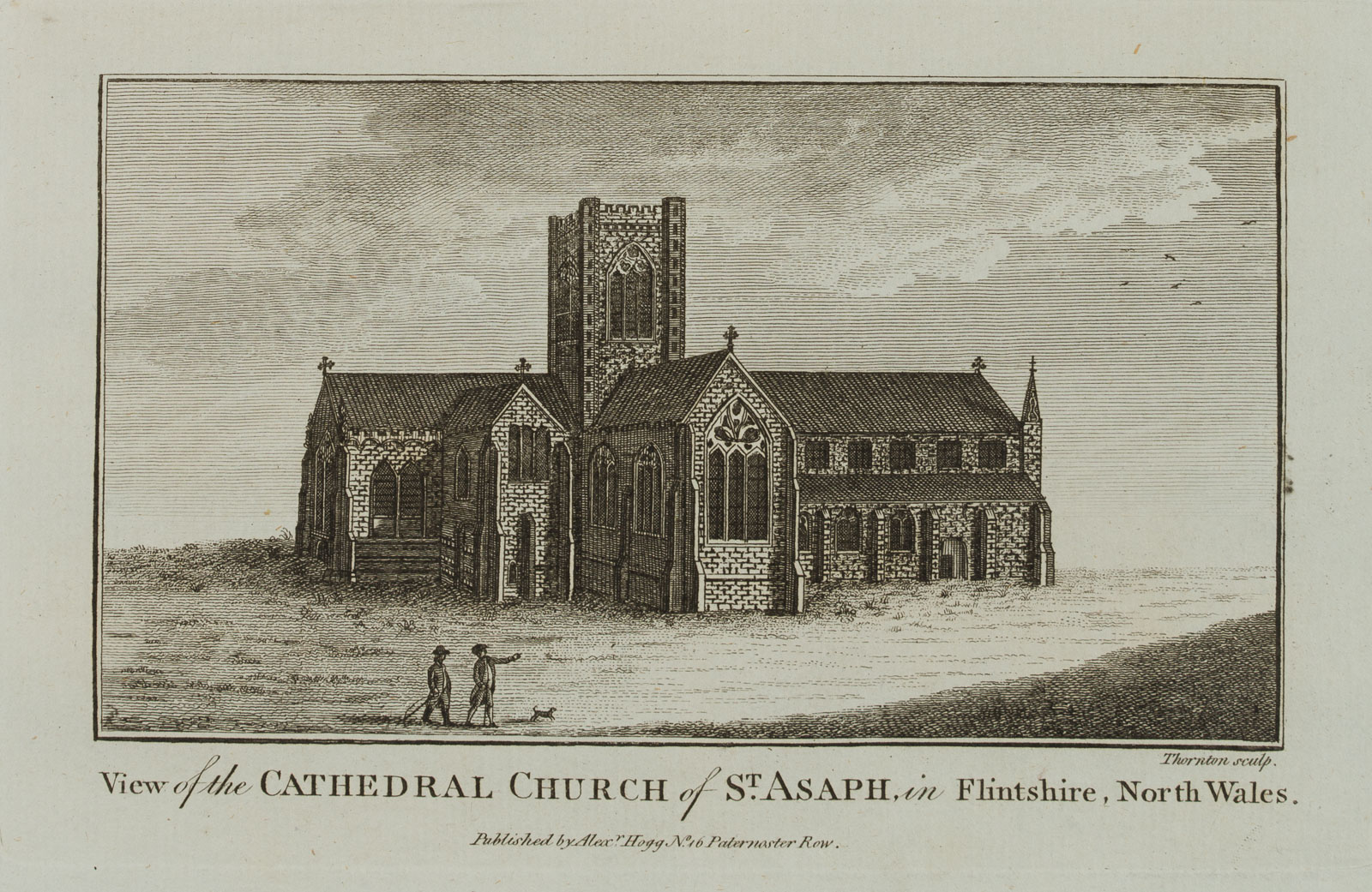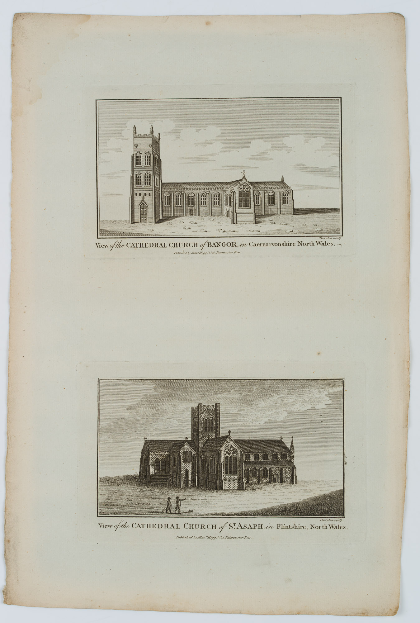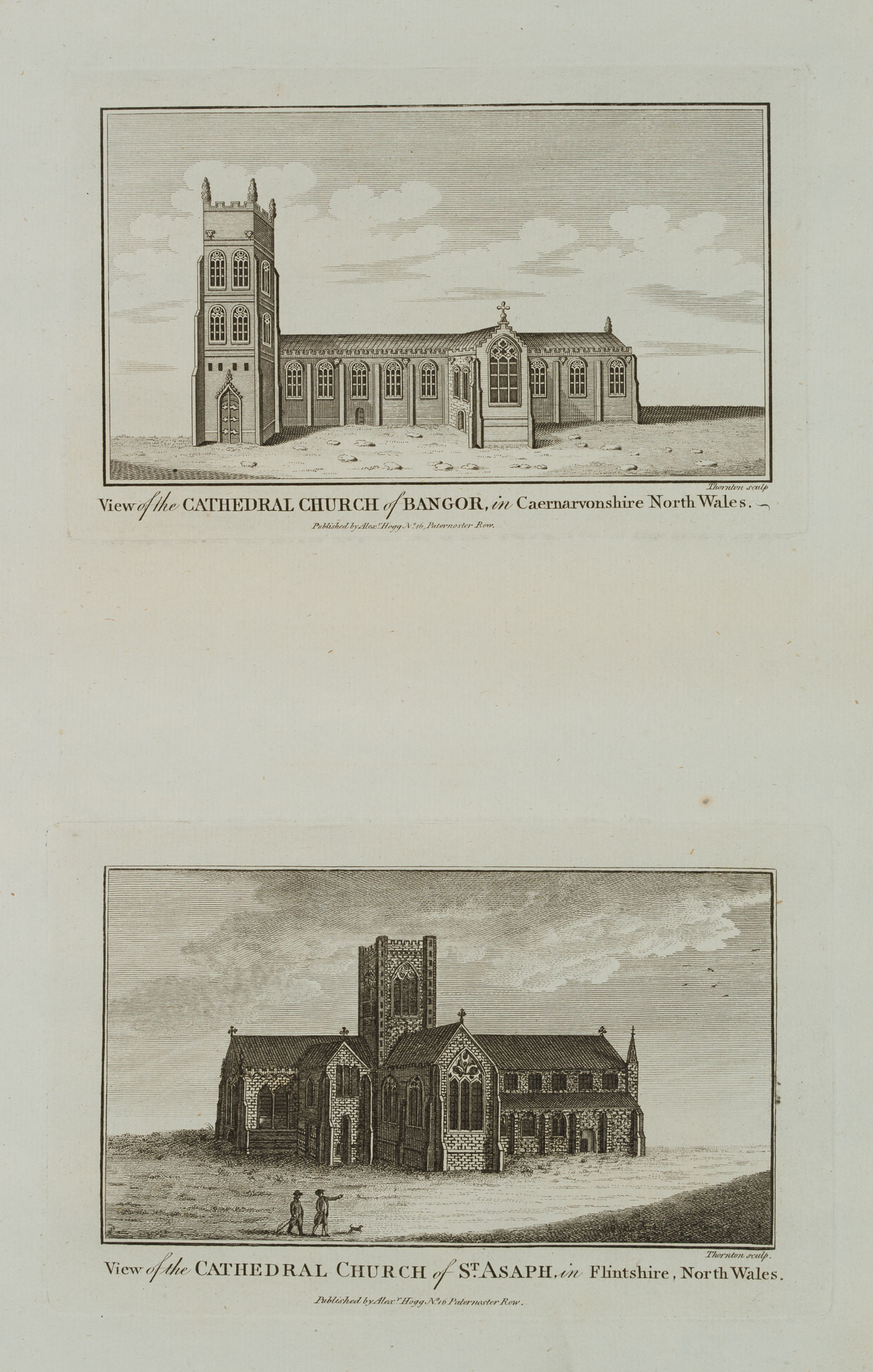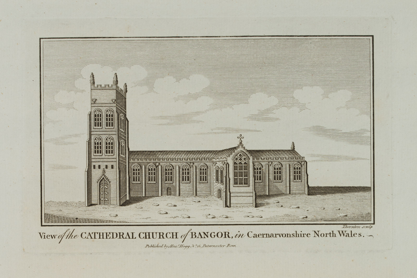 Thornton (18th century), Two architectural and landscape depictions: “View of the Cathedral Church of Bangor, in Caernarvonshire North Wales”, 18th century, Etching