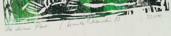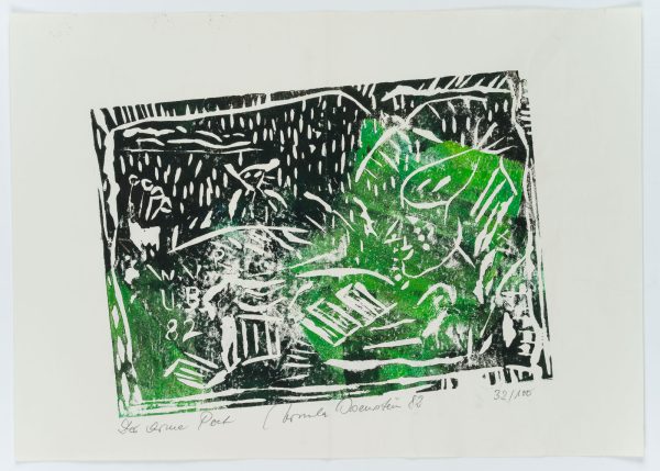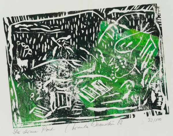 Ursula Osenstein (20th century), The Poor Poet Abstract representation in black and green, 1982, Linocut