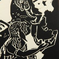 - Description: Linocut on cardboard.