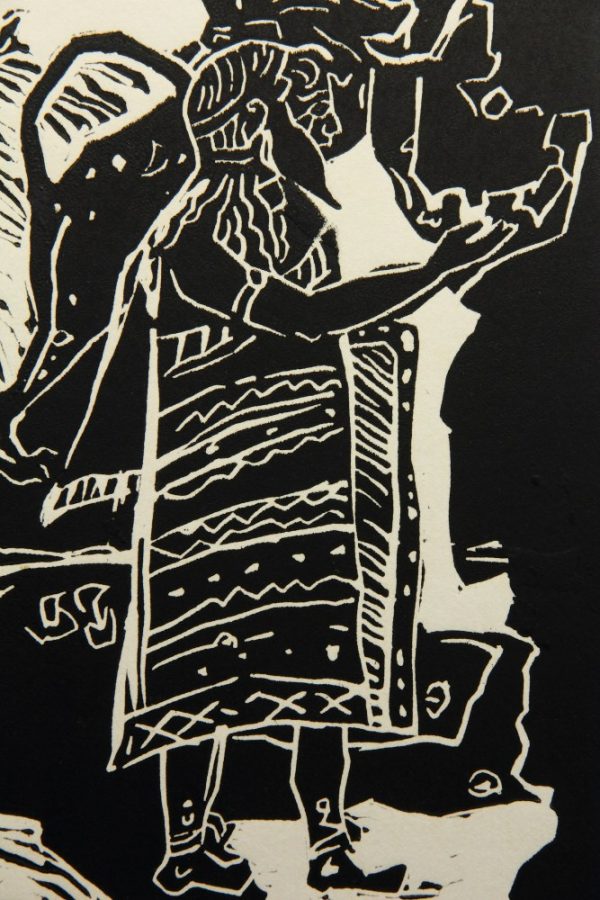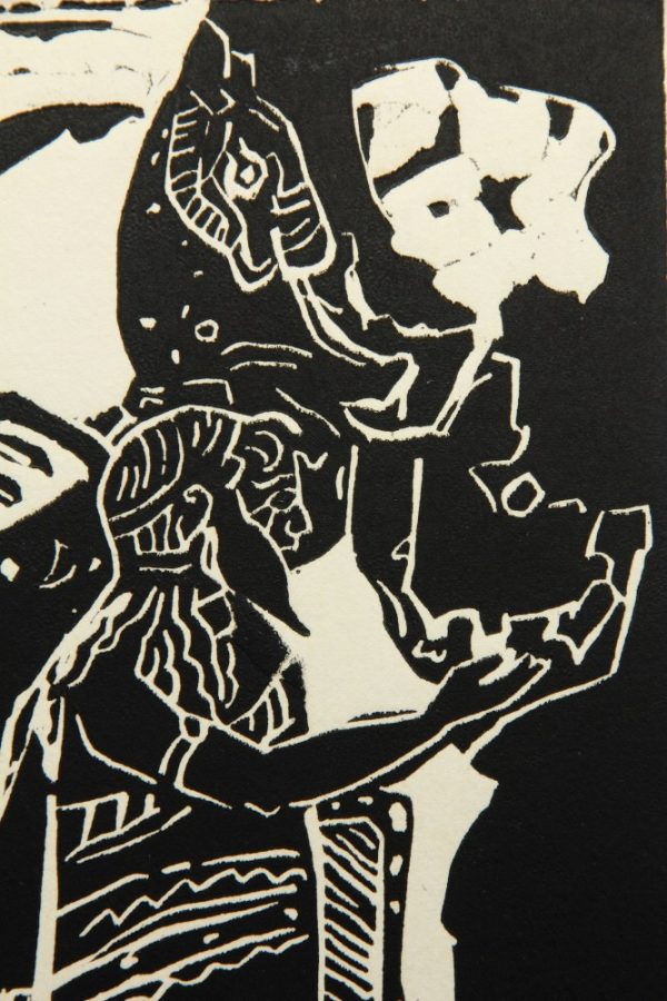 - Technik: Linolschnitt auf Papier