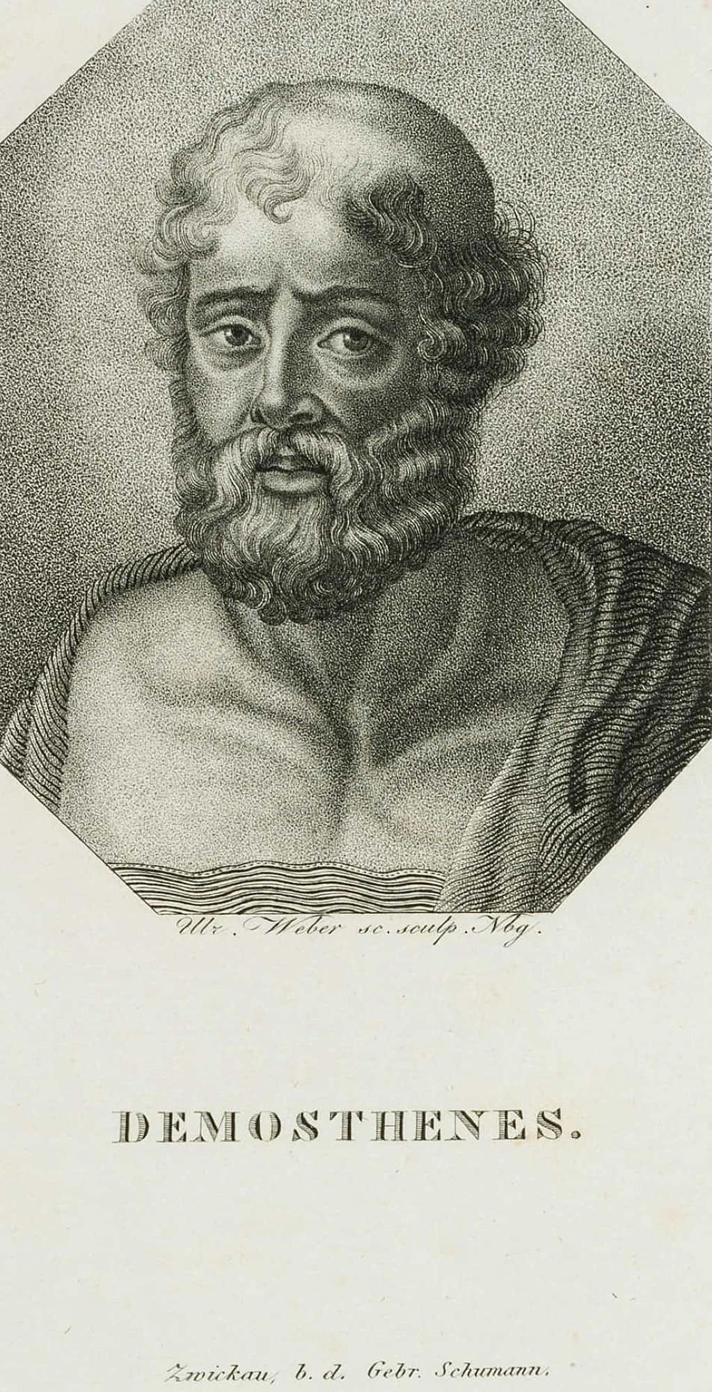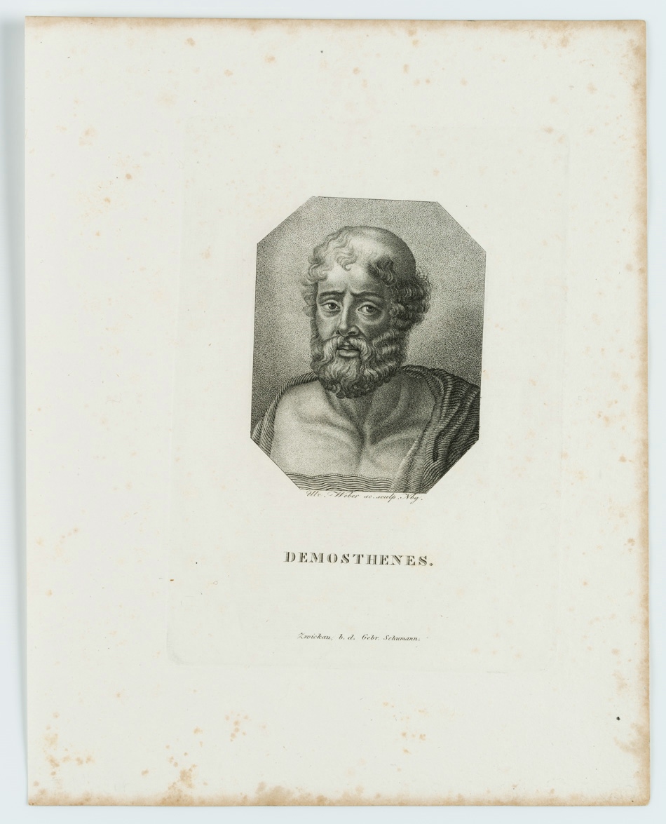 - Description: In the centre under the picture with “Mr? Weber sc. Sculp. Nbg.” signed. Inscribed below with the sitter’s name “DEMOSTHENES.