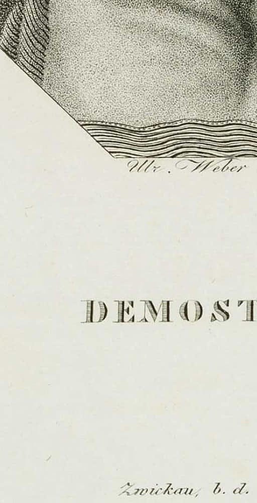 - Beschreibung: Mittig unter dem Bild mit “Mr? Weber sc. Sculp. Nbg.” signiert. Darunter mit dem Namen des Dargestellten “DEMOSTHENES.” bezeichnet.