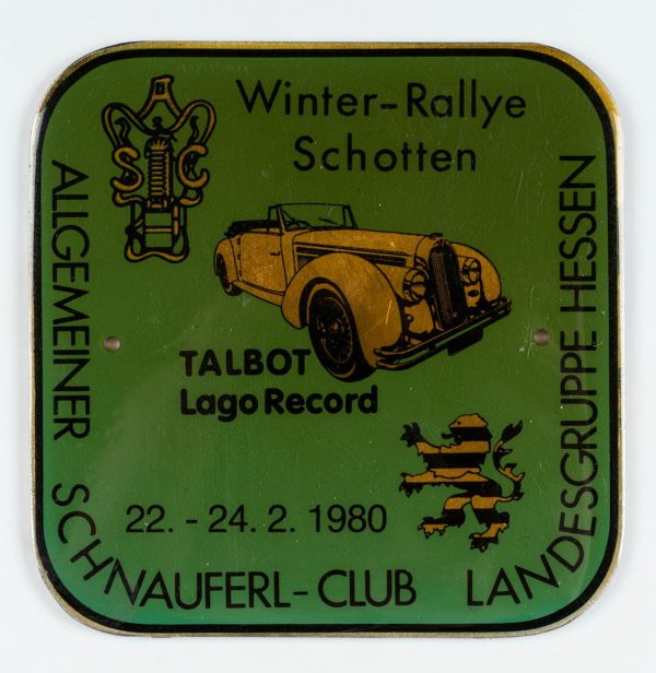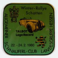 Unbekannt (20. Jahrhundert), Plakette, 10. Winter-Rallye um Schotten 1980, Allgemeiner Schnauferl-Club Hessen, 1980,