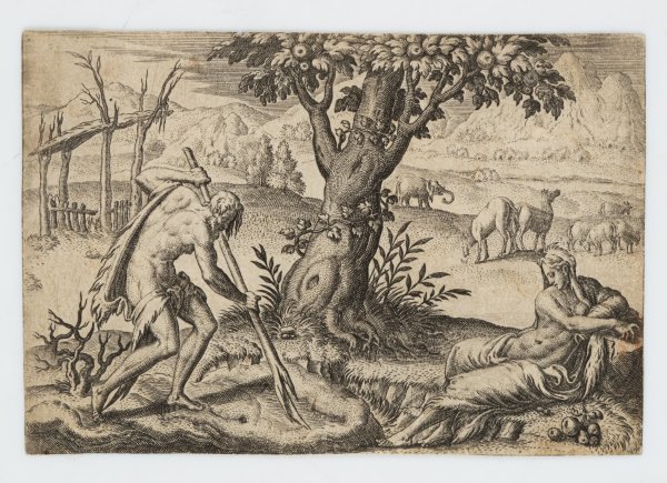 Unknown (16th century), Adam and Eve, condemned to work, , Copper engraving