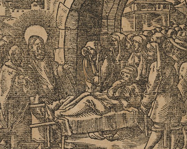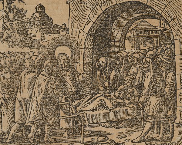 Unbekannt (16. Jahrhundert), Jesus heilt die Kranken, Bibelszene, um 1570, Holzschnitt