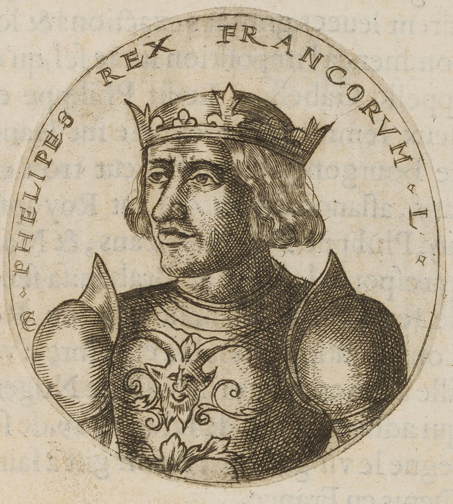 - Beschreibung: Das Blatt zeigt ein ornamental gerahmtes ovales Miniaturporträt des französischen Königs Jean I. Das Blatt stammt aus dem Buch: Cronique sommairement traictee des faictz heroiques de tous les rois de France, & des personnes & choses memorables de leurs temps, herausgegeben von Clement Baudin, in Lyon. Das Buch zeigt eine Sammlung von Bildnissen der Könige Frankreichs mit kurzgefassten Lebensläufen.