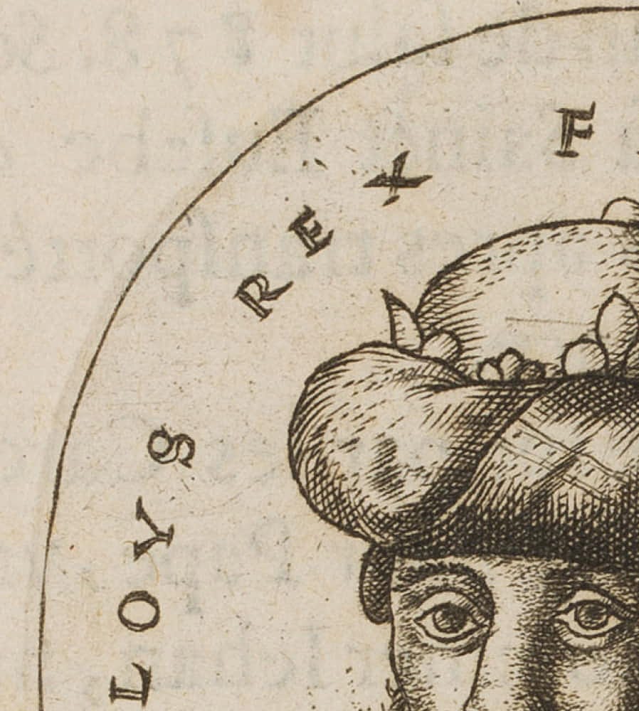 - Quelle: Clement Baudin ( – ) Cronique sommairement traictee des faictz heroiques de tous les rois de France, & des personnes & choses memorables de leurs temps, 1570 | Buch, Politik