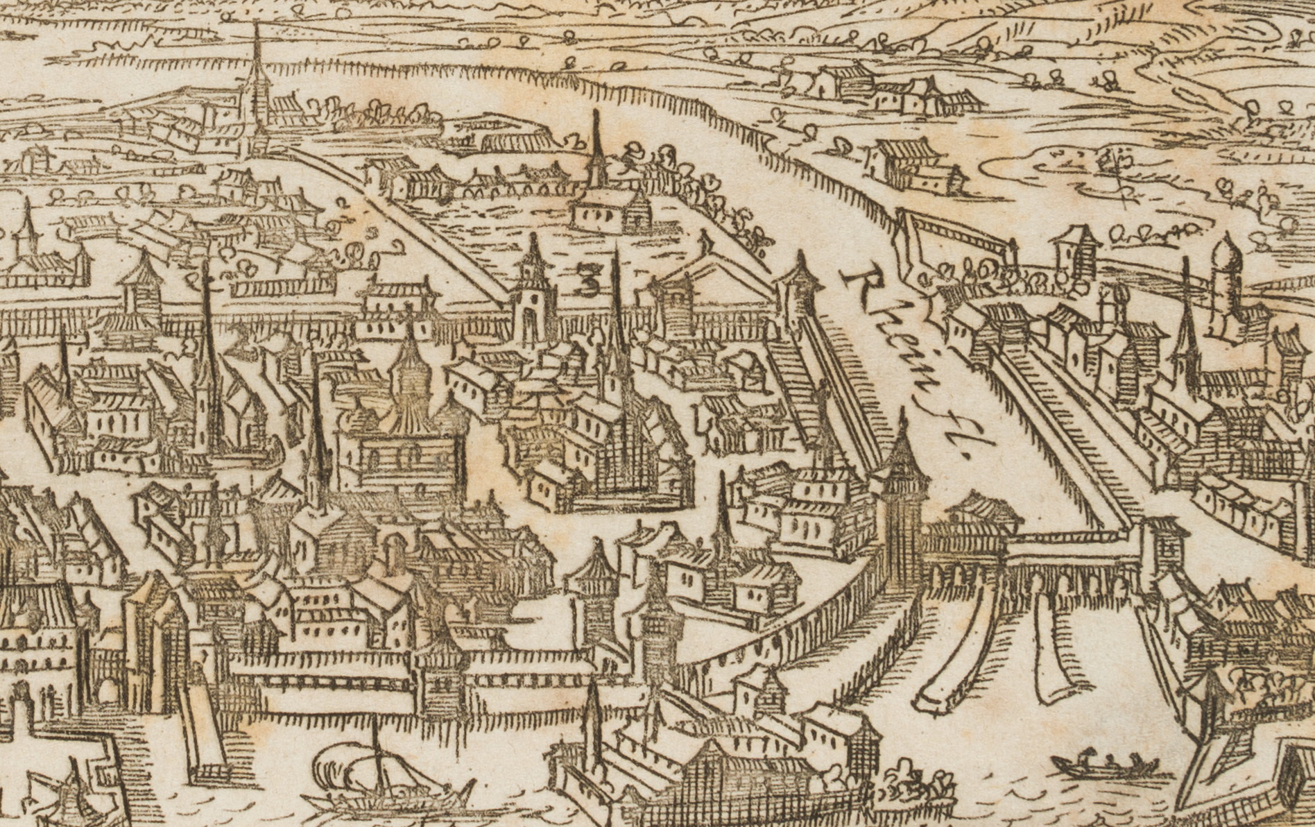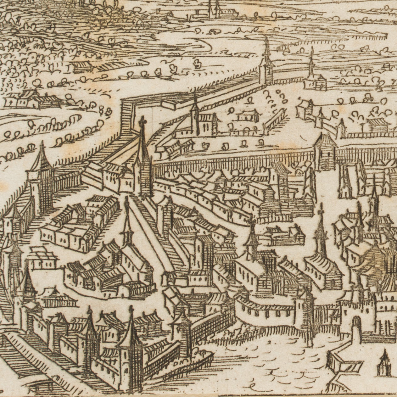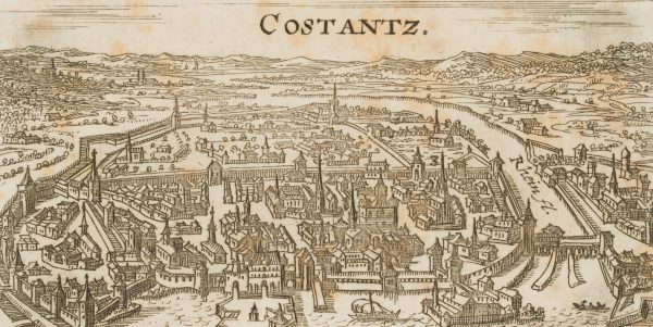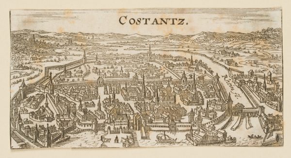 - Description: Beautiful veduta of early modern Constance with fortification ring and bridges over the Rhine.
