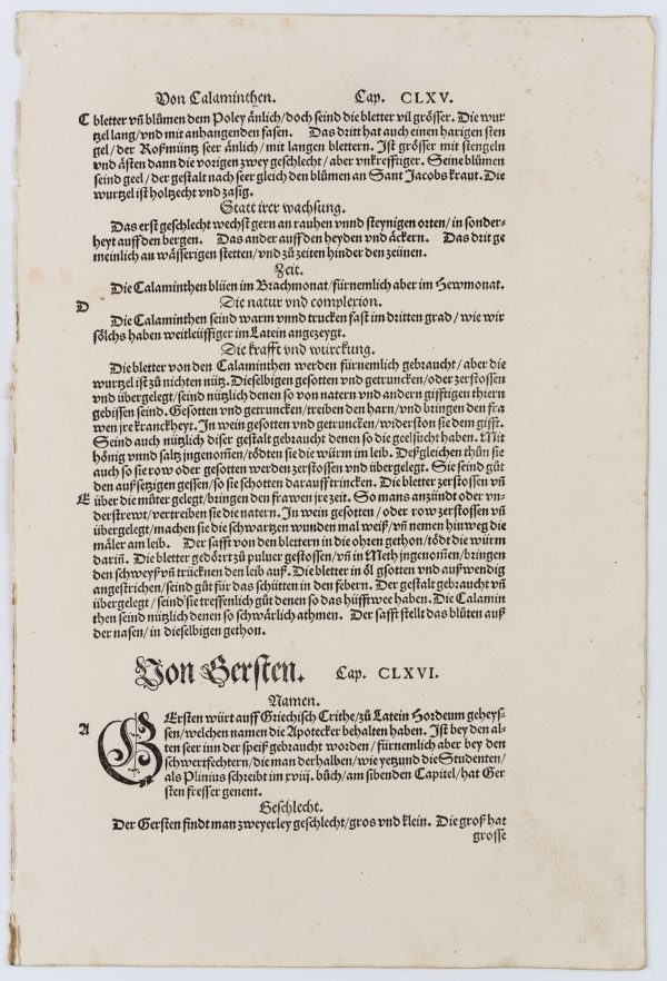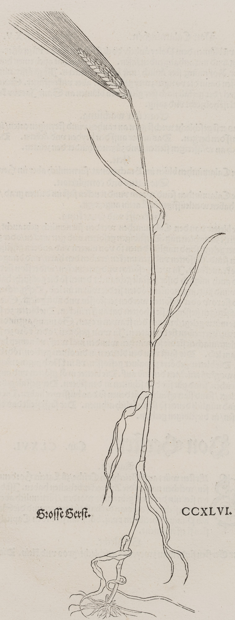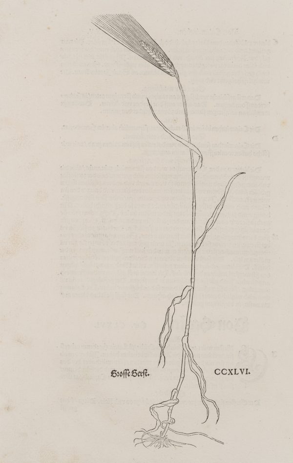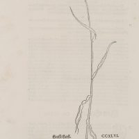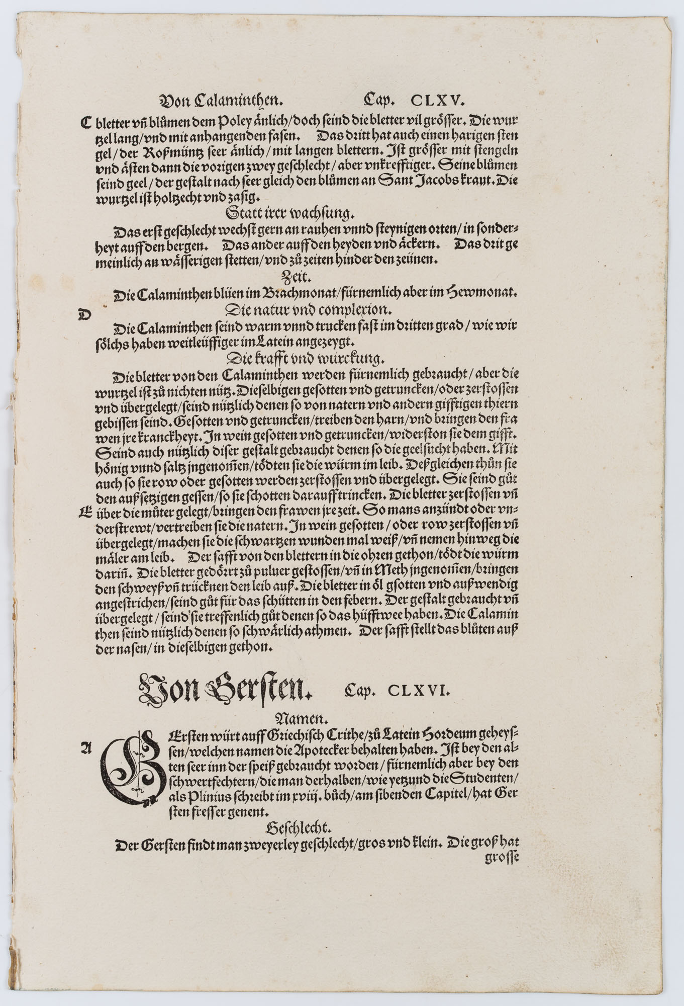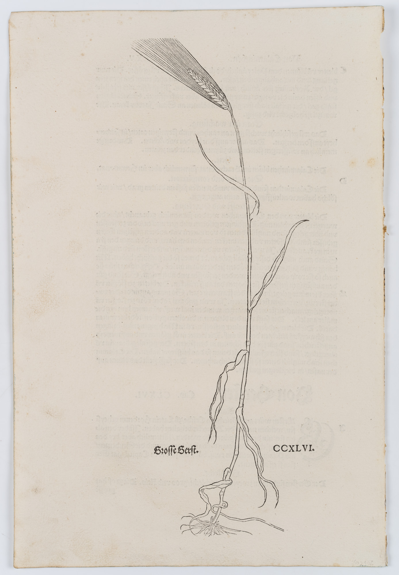 - Beschreibung: Mit Namen beschriftet, lateinisch nummeriert mit „CCXLVI“ (246), rückseitig mit Textabschnitten zu den Lexikonartikeln der Gerste und der Calaminthen.
