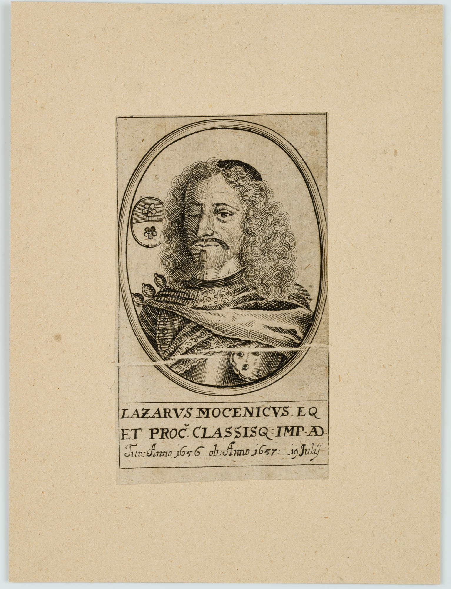 - Inscription: Inscribed below the engraving with the sitter’s name and dates of life: “LAZARUS MOCENICUS E Q ET PROC. CLASSIQ IMP AD Tur: Anno 1656 ob: Anno 1657 in July”.
