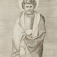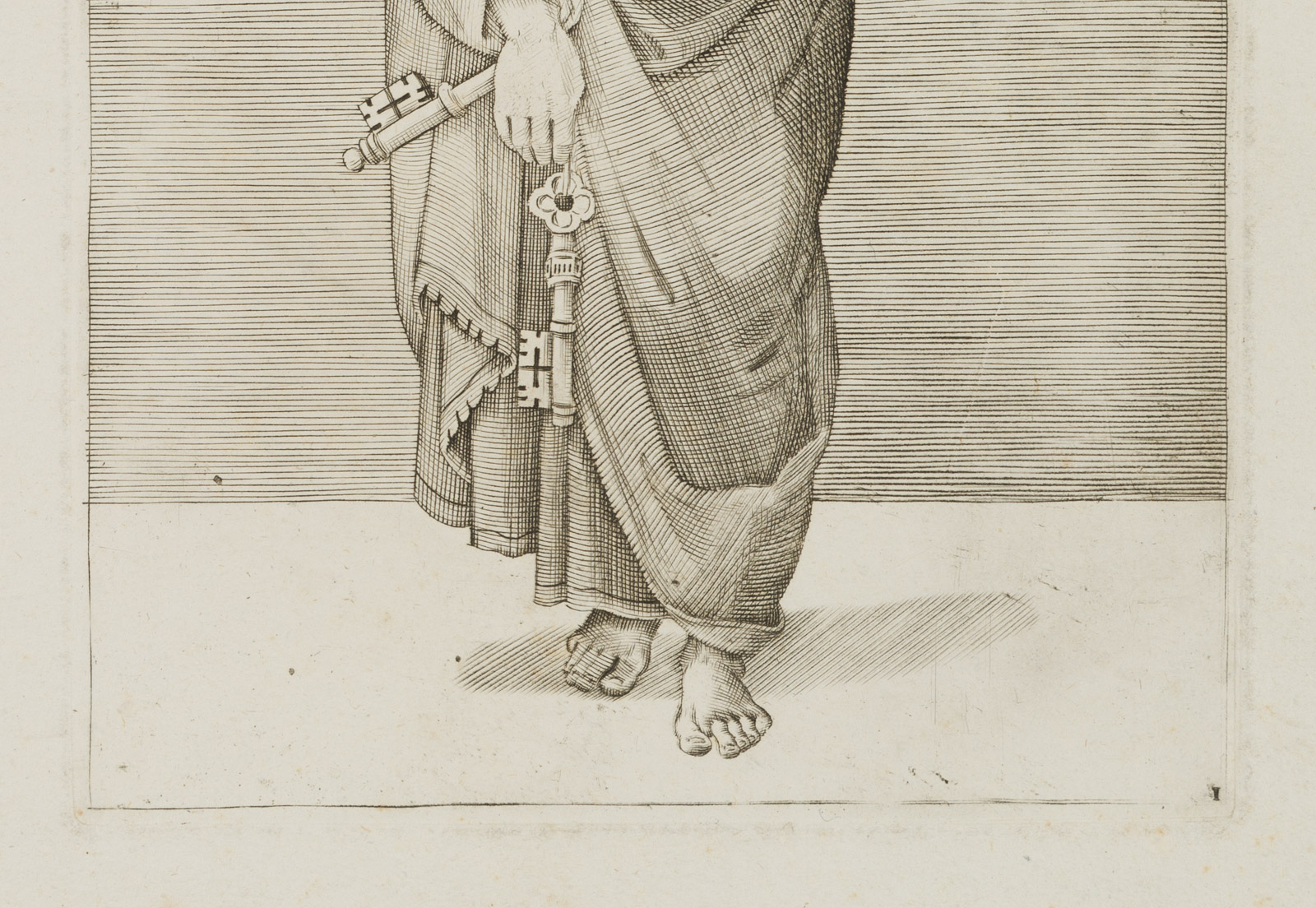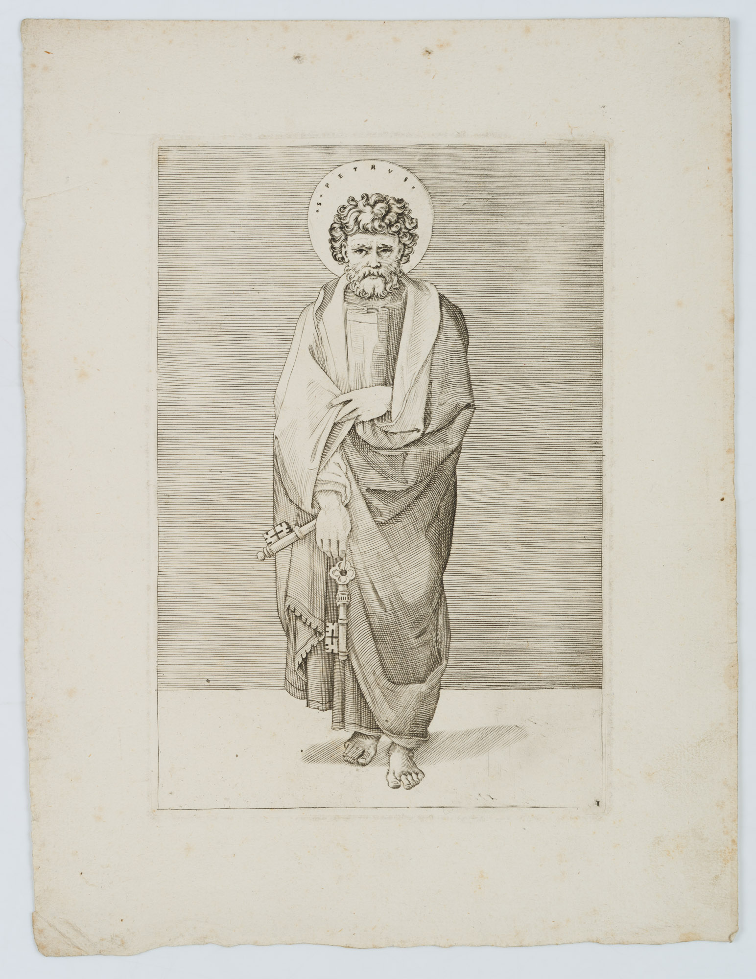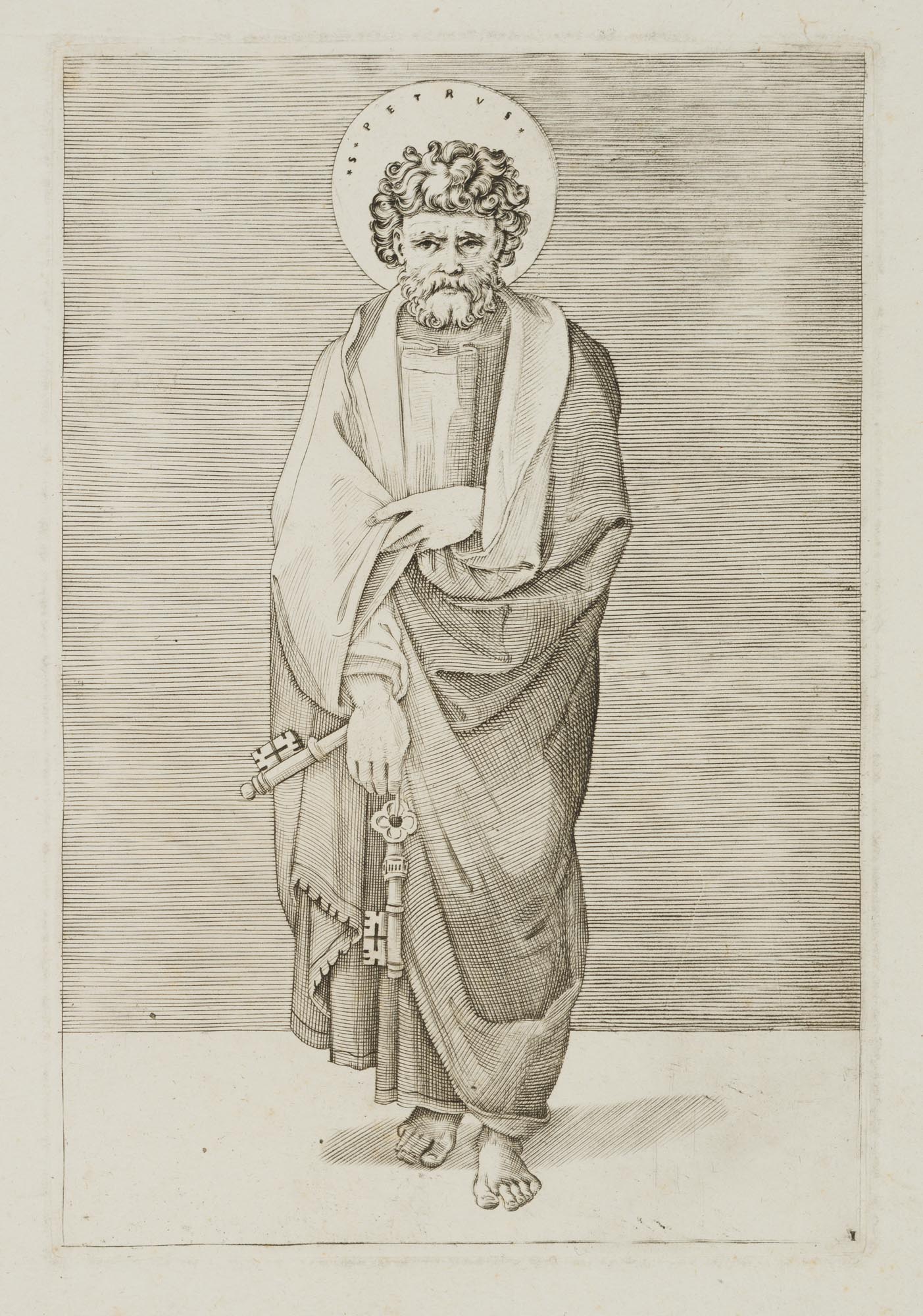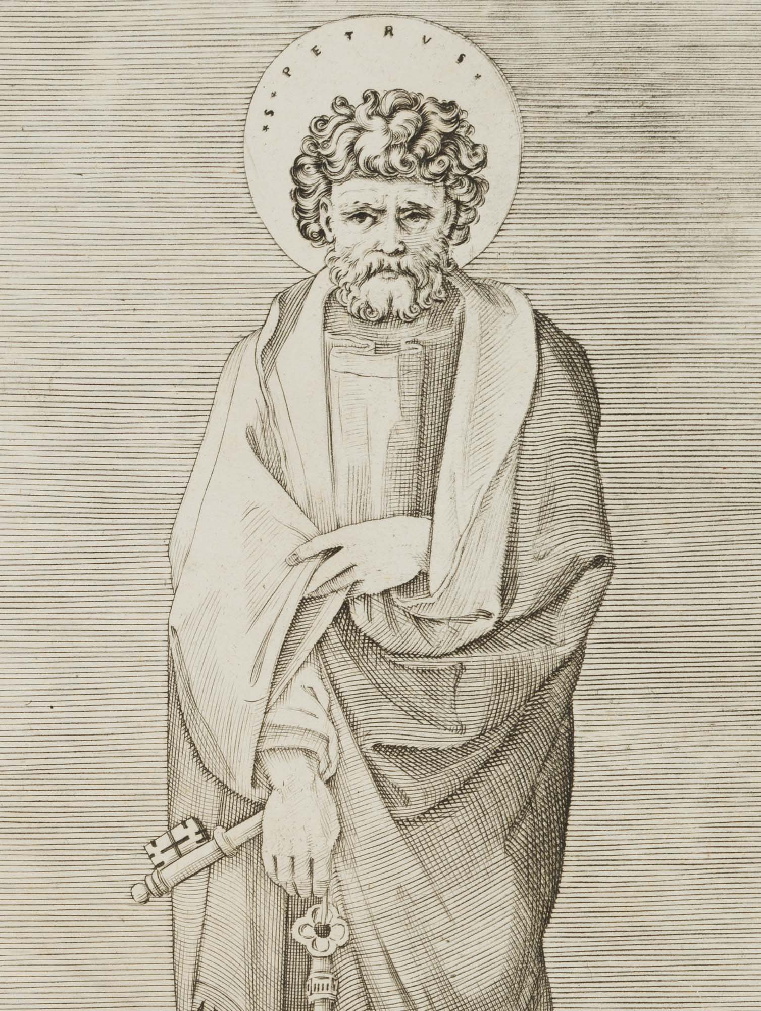 - Description: Copper engraving depicting St. Peter with nimbus and keys
