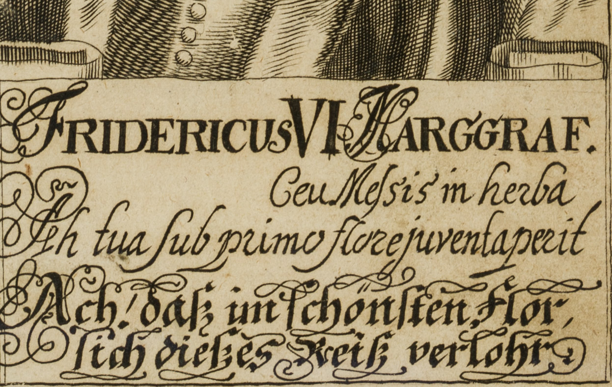 • Bezeichnung: Unten im Druck bezeichnet: “Fridericus VI Marggraf”.