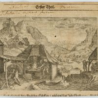 - Beschreibung: Oberhalb beschriftet mit “Erster Theil.” und nummeriert mit “21”, daneben mit Tusche unkenntlich beschriftet. Die Bildunterschrift ist abgeschnitten. Rückseitig mit den “Historischen Chronicken” zur Bibelfigur Noah.