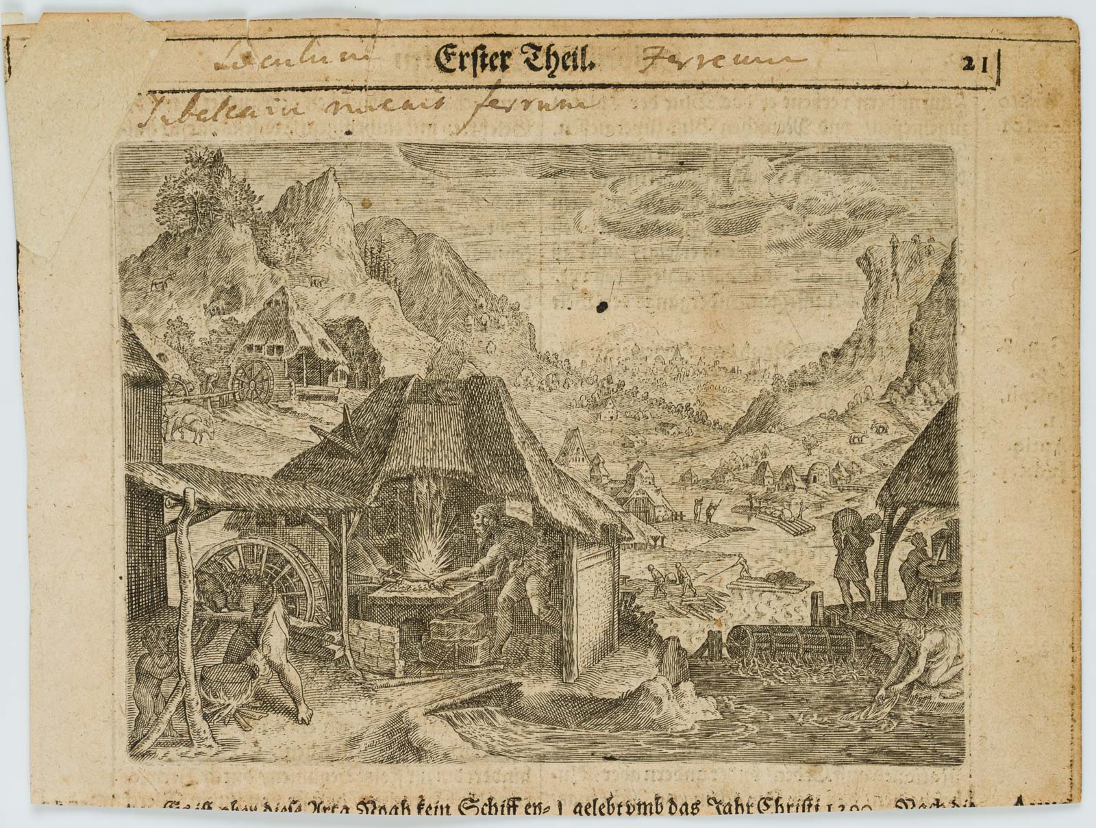 - Description: Inscribed above with “Erster Theil.” and numbered “21”, next to it unrecognisably inscribed in ink. The caption has been cut off. On the reverse with the “Historical Chronicles” on the biblical figure Noah.