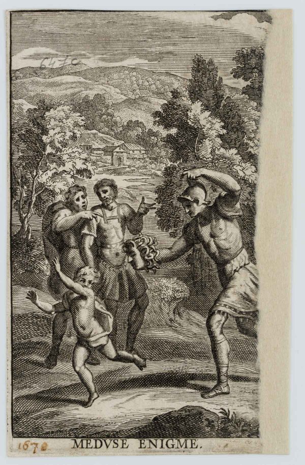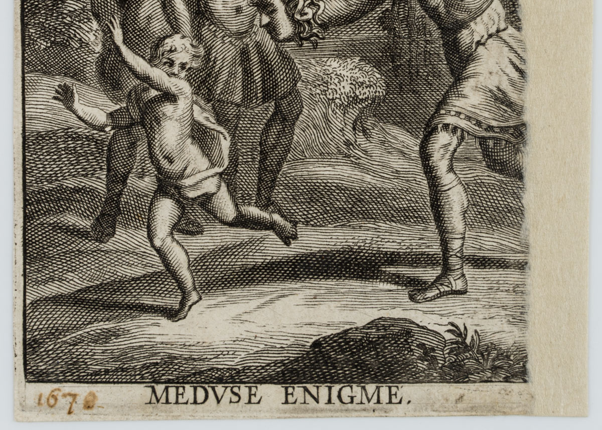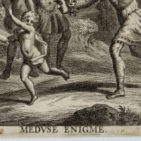 - Inscription: Inscribed below in the printing plate: “Meduse Enigme”. Next to it dated in ink: “1678”. On the reverse is the imprint of a typographical text.