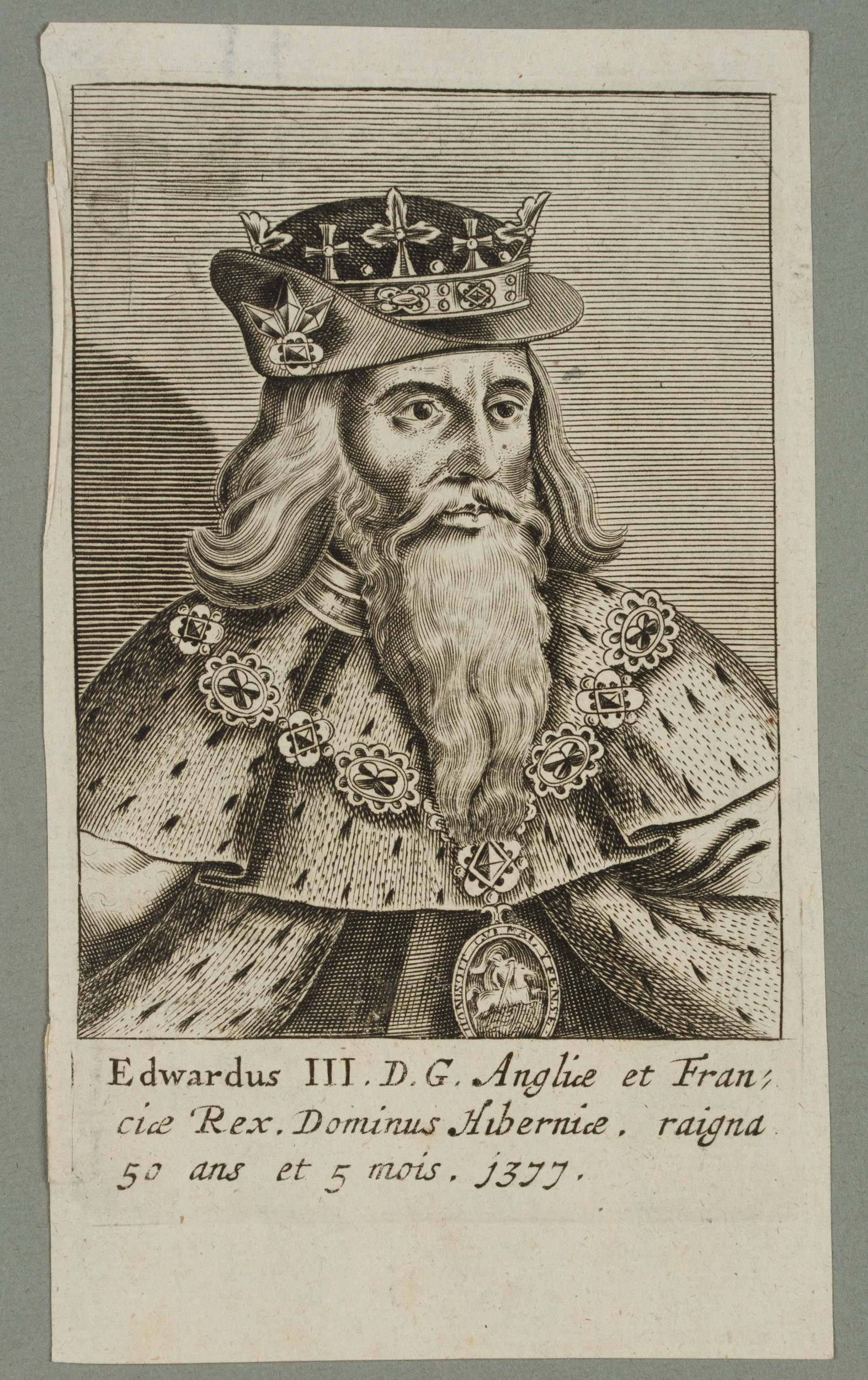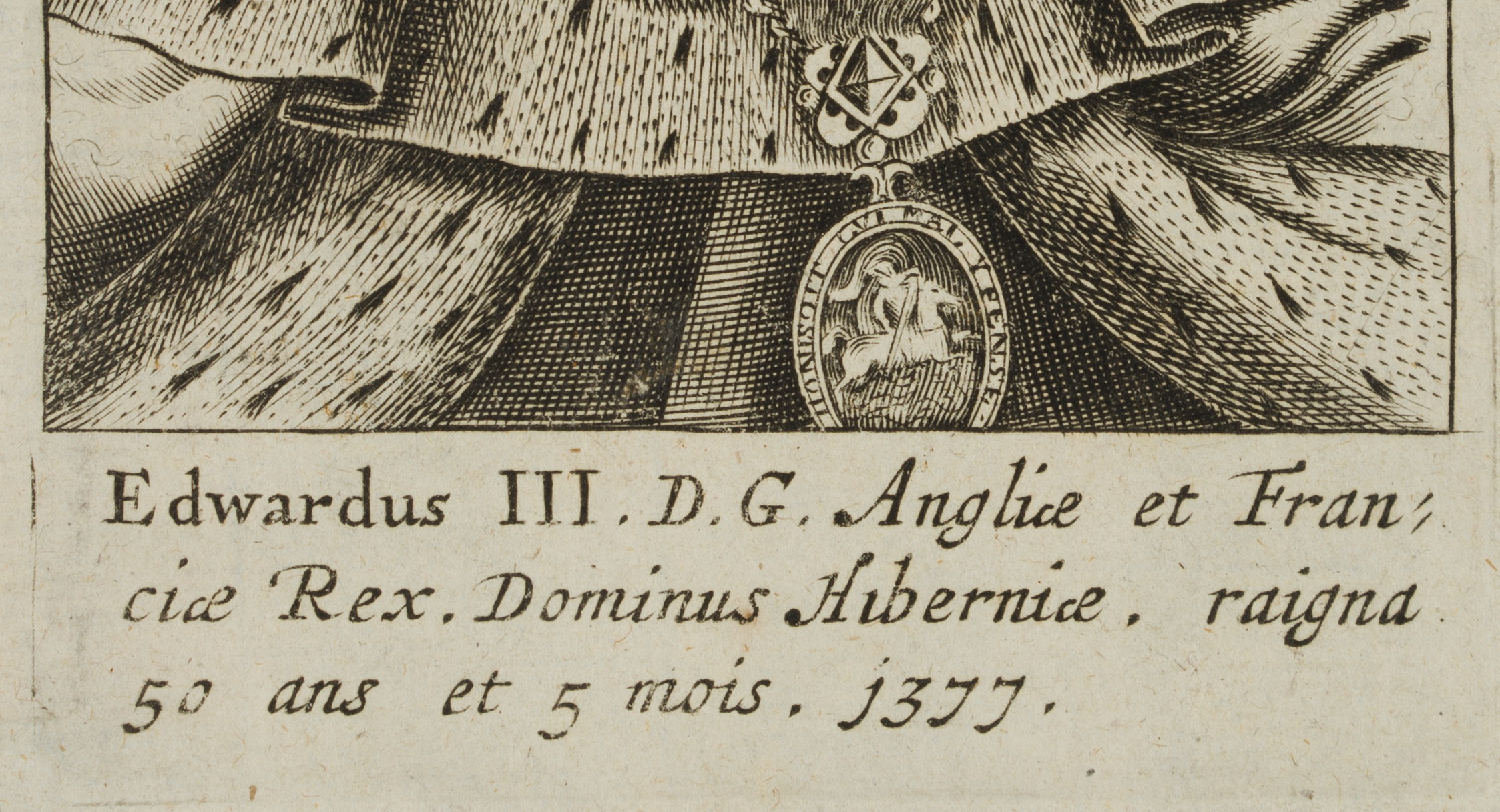 • Bezeichnung: Unten im Druck bezeichnet: “Edwardus III. D. G. Angliae [..]”.
